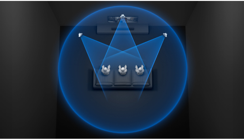 Now more people can enjoy the same immersive surround experience. By using phantom speakers, 360 Spatial Sound Mapping technology achieves wider coverage than conventional virtual surround systems.