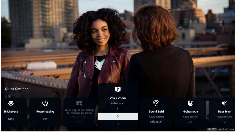 Control surround sound easily with your BRAVIA TV remote. Sound settings automatically appear on the BRAVIA Quick Settings menu for easy control of features, like Sound Field and volume.