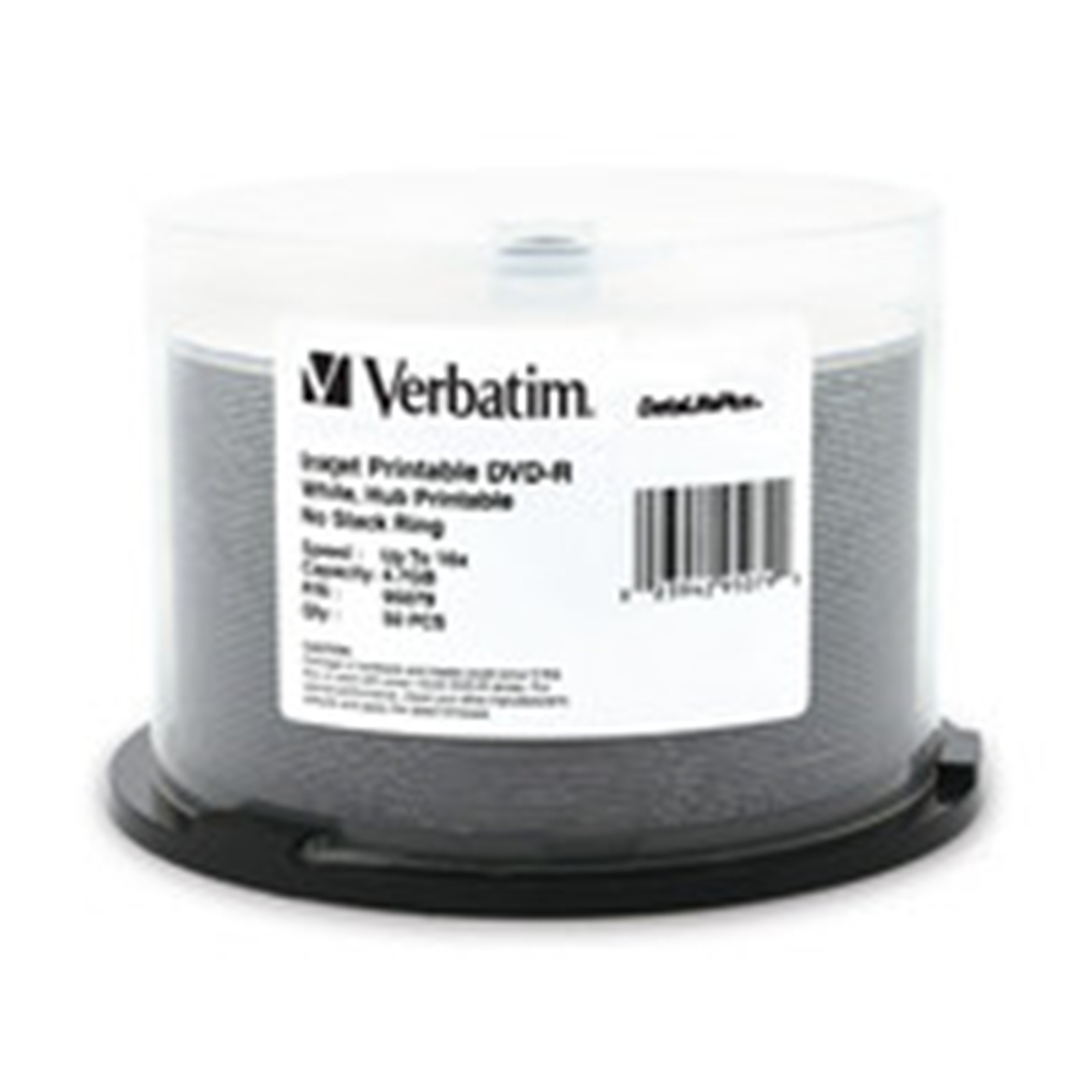 Combining an exceptional inkjet printable surface with professional-grade AZO, recording performance and reliability, Verbatim DataLifePlus White Hub Inkjet Printable DVD-R 16X discs are the ultimate choice for developing, customizing and distributing DVD content. Certified for 1X-16X* DVD recording and preferred by DVD+R drive manufacturers, Verbatim DataLifePlus DVD-R media uses an advanced AZO recording dye to provide the highest level of performance, compatibility, and archival life. DataLifePlus White Hub Inkjet Printable 16X DVD-R discs have been extensively tested and qualified for use with DVD/CD Inkjet printers and duplicators offered by such leading industry manufacturers as Primera, Microboards & Epson.