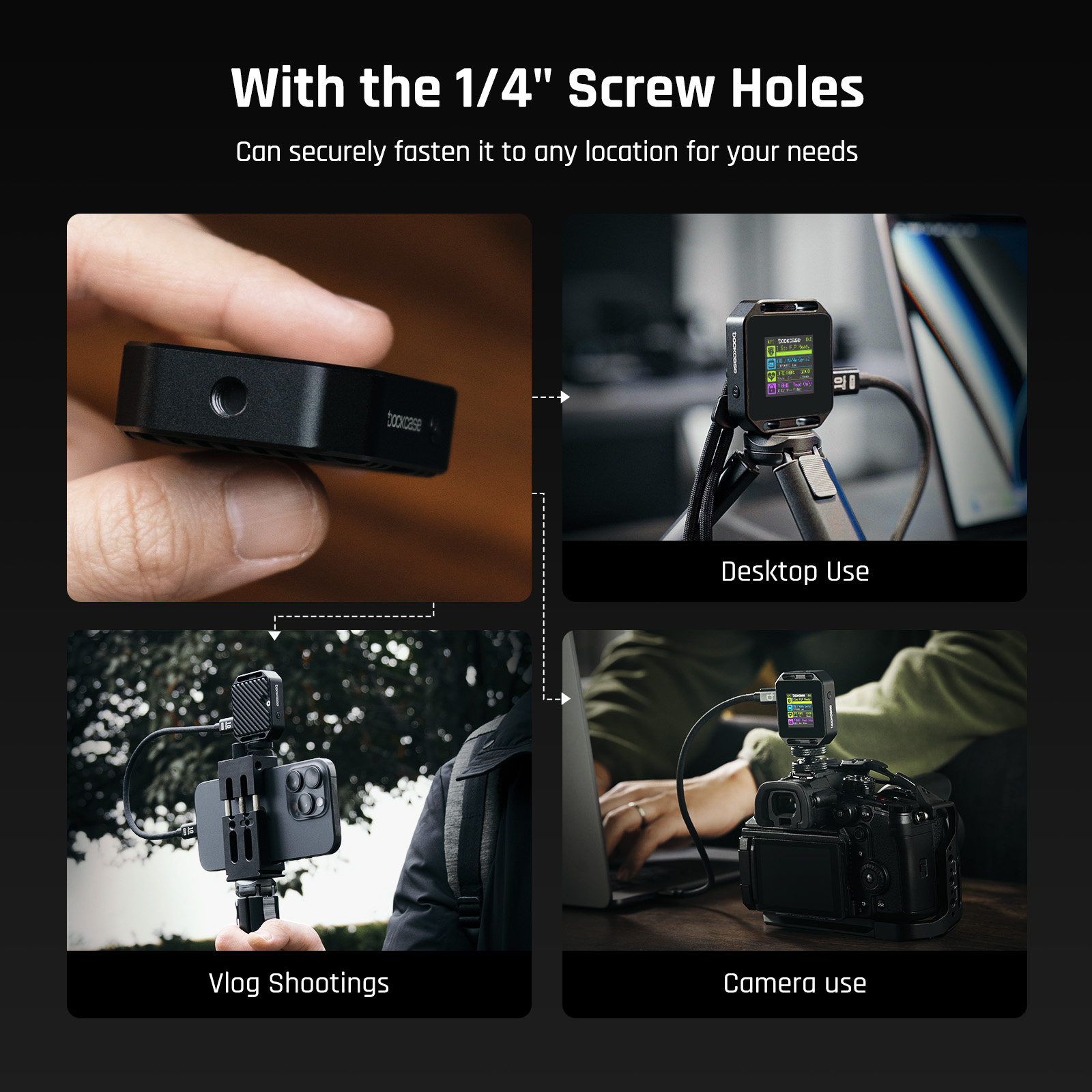 Directly connected to iPhone 15 Pro/ Pro Max or camera for stable shooting and seamless data storage during capture. The design of 1/4" screw holes on both sides lets you switch things up reliable when the moment demands it.