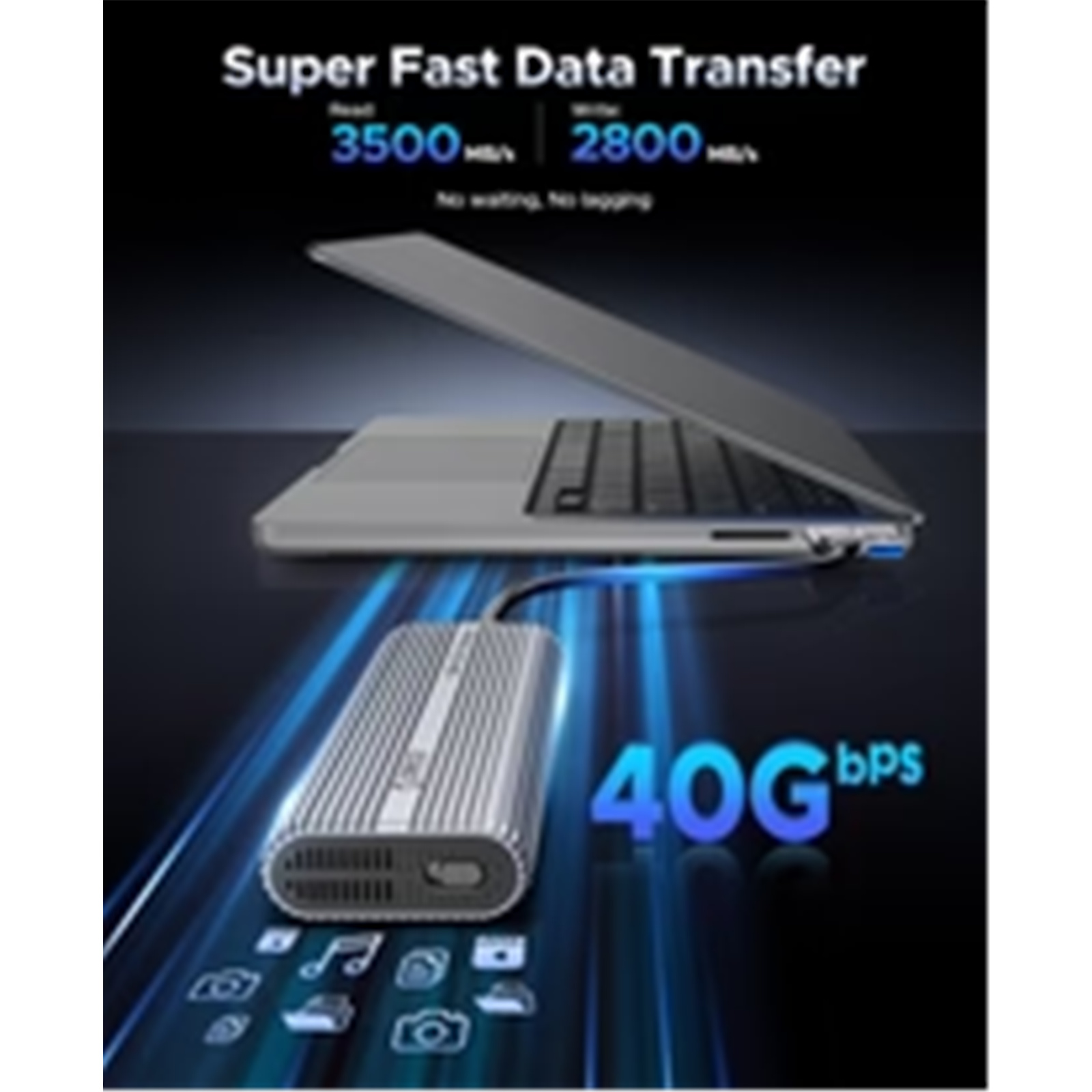 Powered by a smart chip and UASP acceleration, this M.2 NVMe enclosure supports data transfers up to 40Gbps via a Thunderbolt 3/4-compatible Type-C interface. Achieve read speeds up to 3500MB/s and write speeds up to 2800MB/s, transferring 180GB in just one minute-perfect for gamers, video editors, and creators.