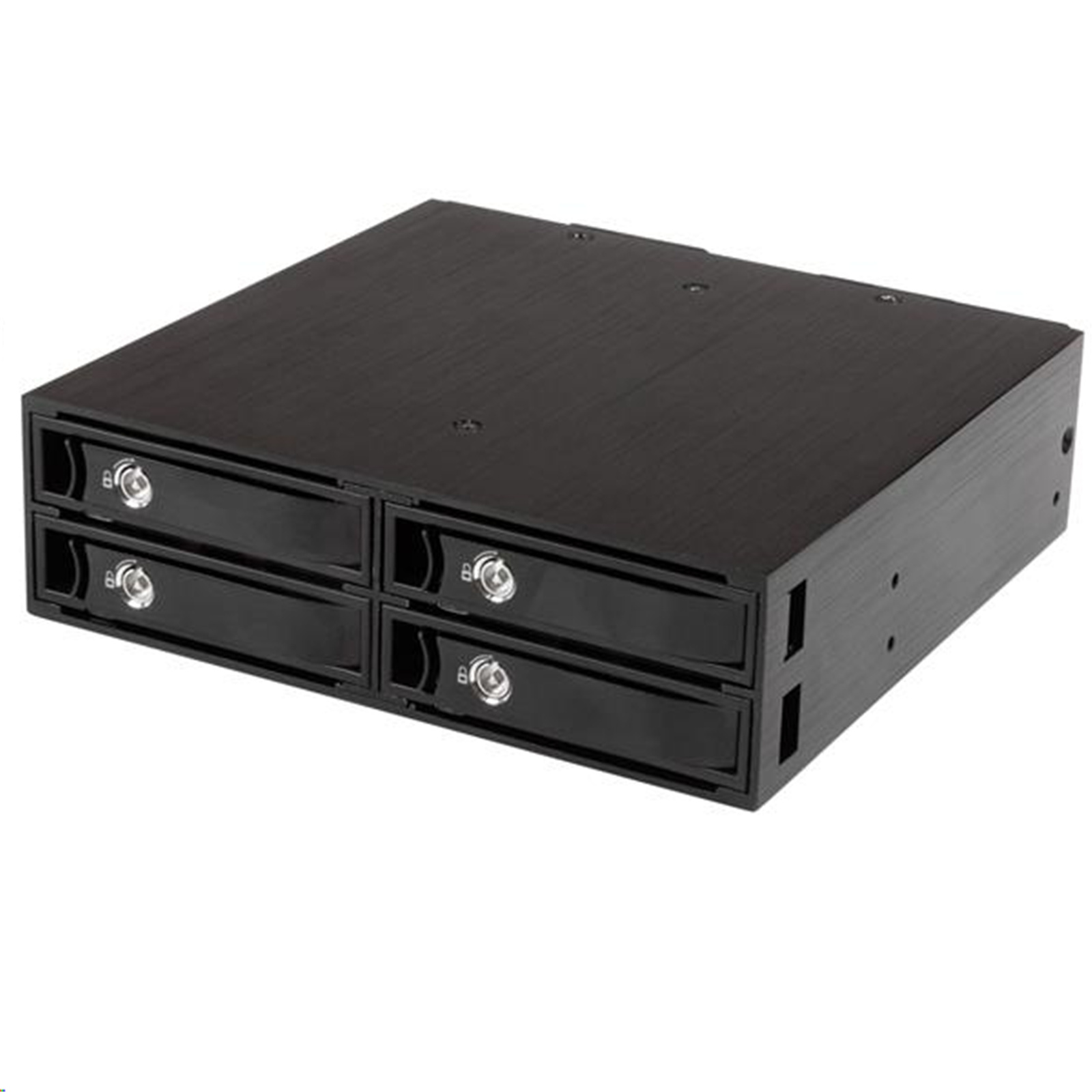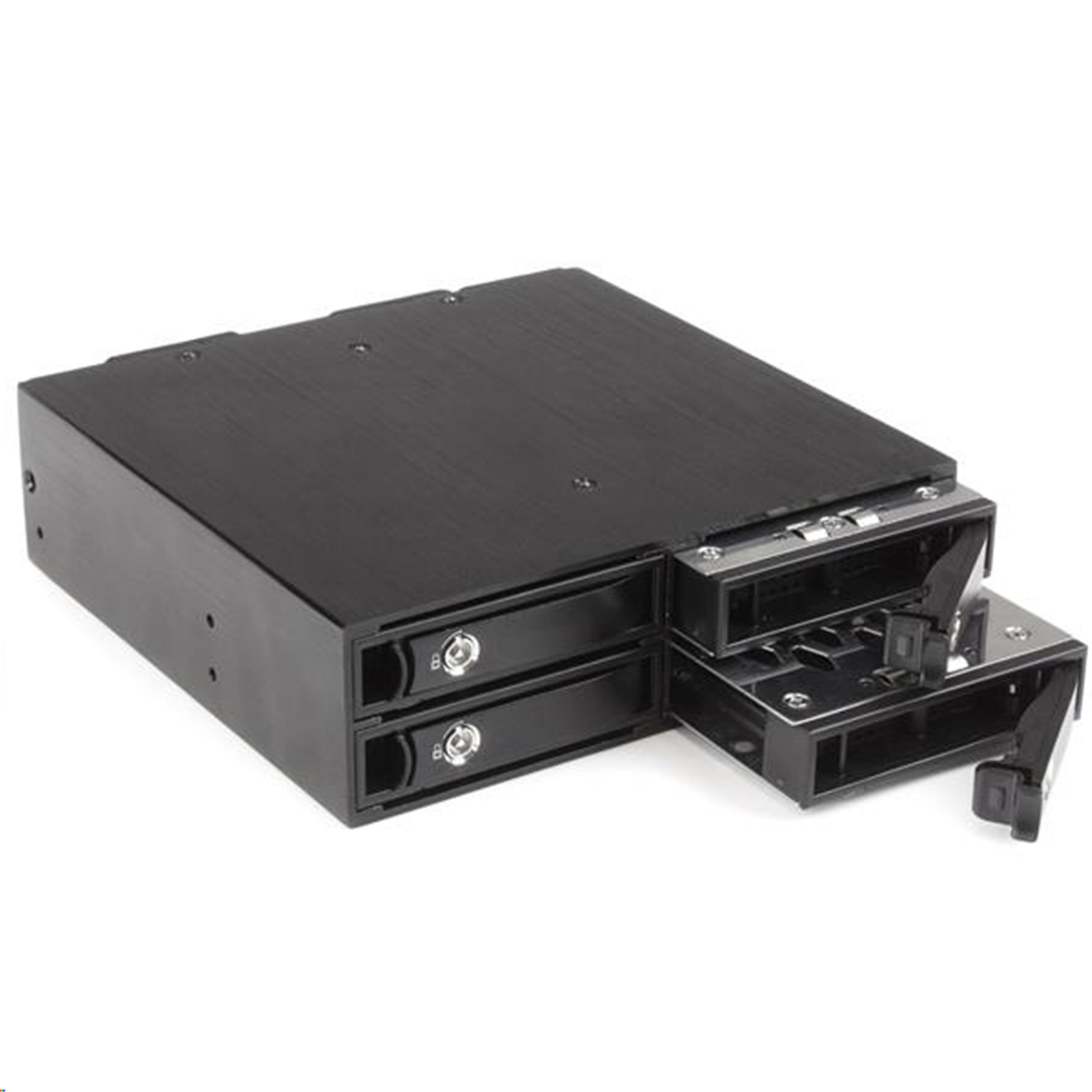 The mobile rack backplane is engineered to protect your valuable data and provide reliable performance. The aluminum housing is designed for enhanced heat dissipation, while two 40mm fans improve air flow to minimize heat build-up and ensure optimum operating temperature. The backplane can be mounted either vertically or horizontally, for error-free tray insertion and maximum compatibility with servers or desktop computers.You can lock the removable steel trays in place, providing an enhanced level of drive protection. The Non-Scratch SATA (NSS) connector provides a high 50,000+ insertion rating, your assurance of long-lasting performance of both the drives and the bay.