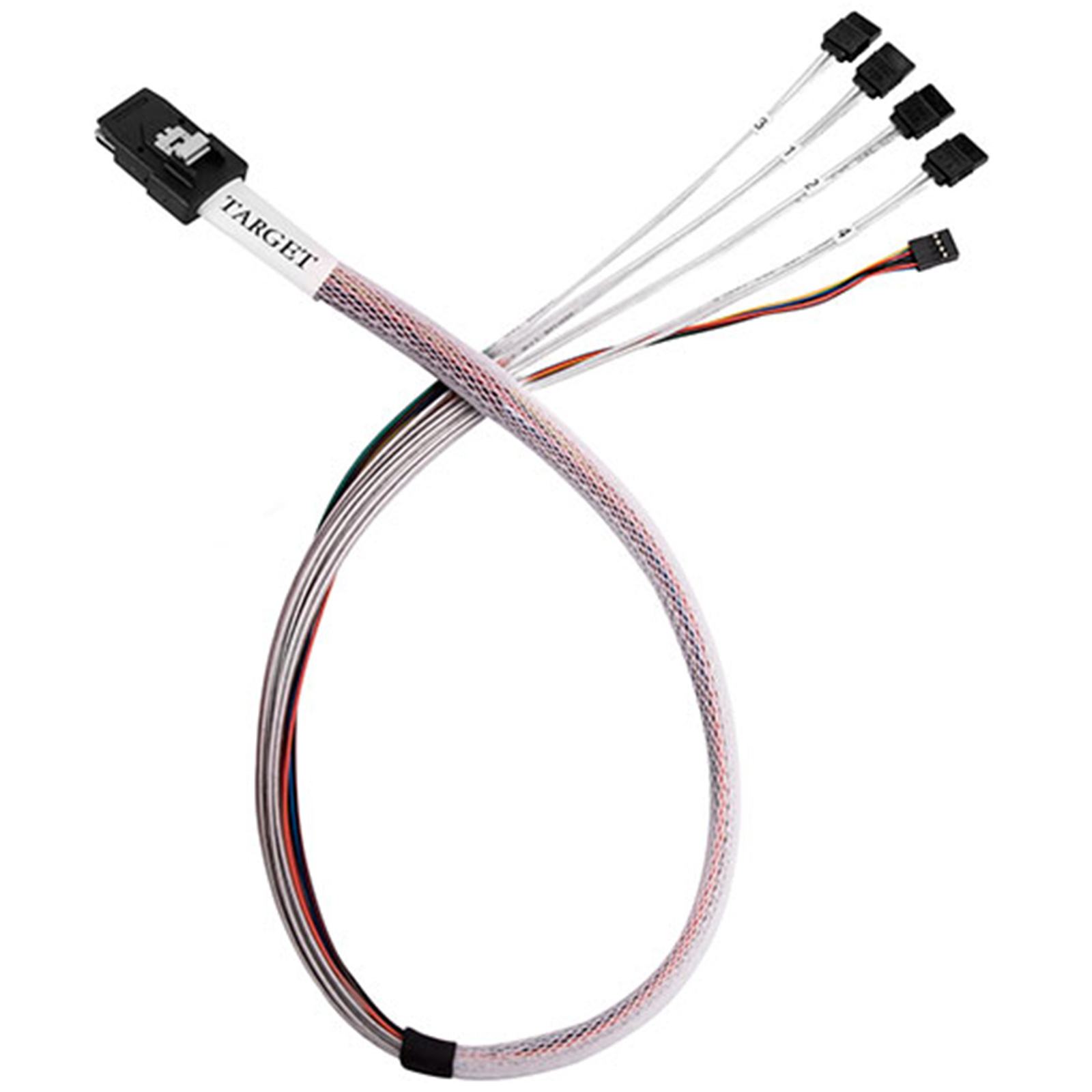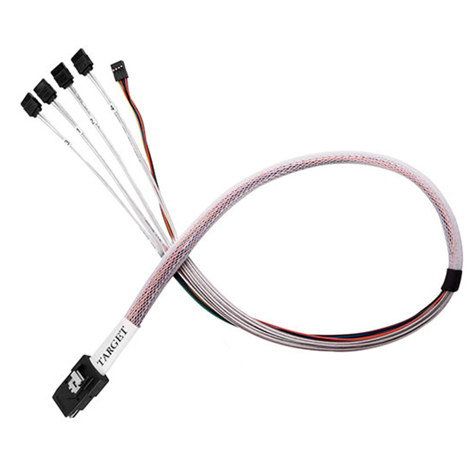 Mini-SAS SFF-8087 36pin (target) to SATA 7pin x 4 (host) with sideband cable