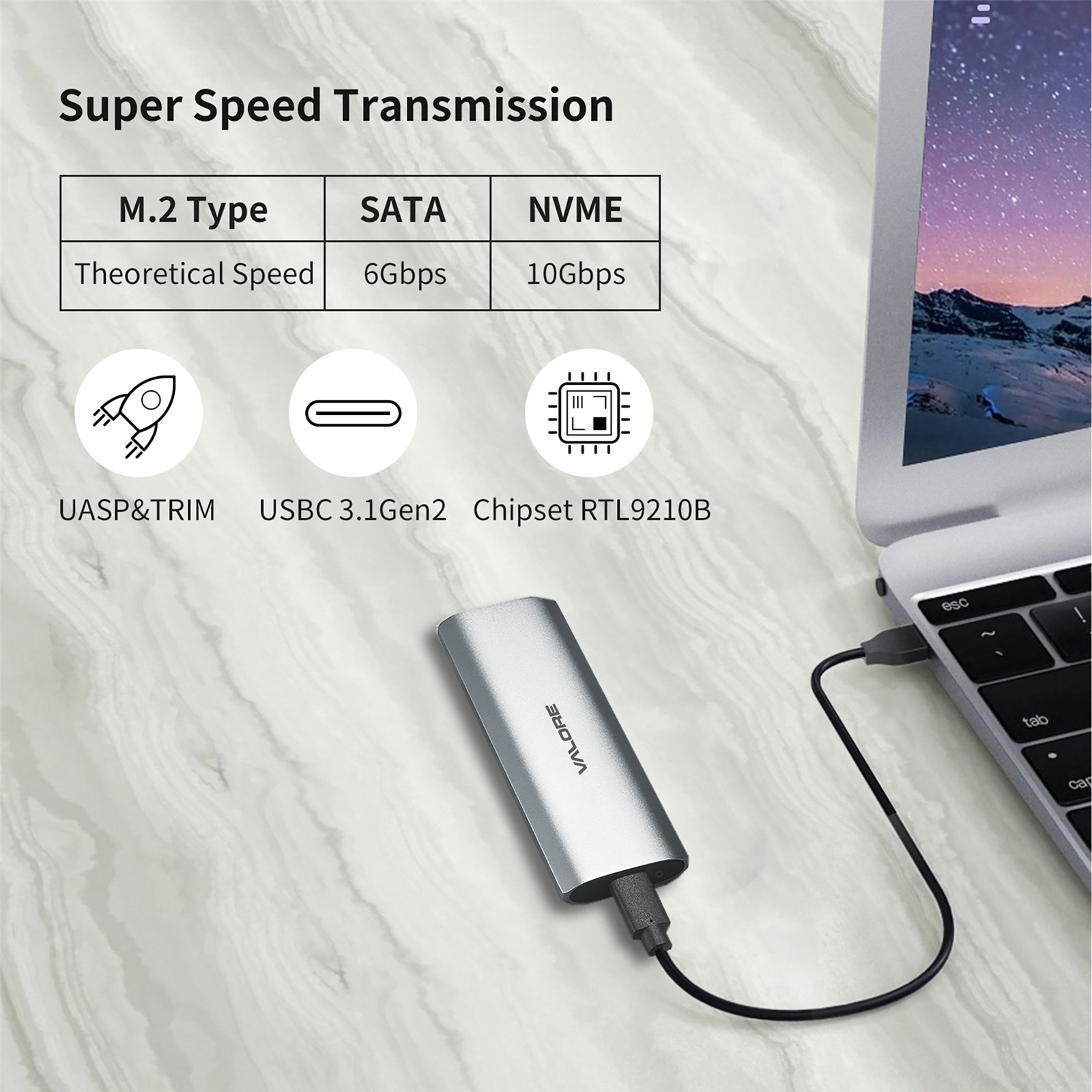 Valore AC-212 (10Gbps) USB 3.1 NVMe SSD Enclosure Aluminum Alloy Case - Support 2230 / 2242 / 2260 / 2280 M.2 NVME & M.2 SATA SSD