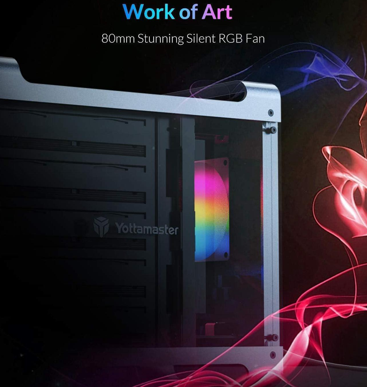 Yottamaster Defender 5 Bay with RAID RGB External Hard Drive Enclosure Aluminum Alloy 2.5"& 3.5" SATA HDD / SSD RAID External HDD SSD Storage Enclosure with 80mm RGB Silent Fan - Supports 5x 18TB Capacity for PC DIY Experts & Gamers