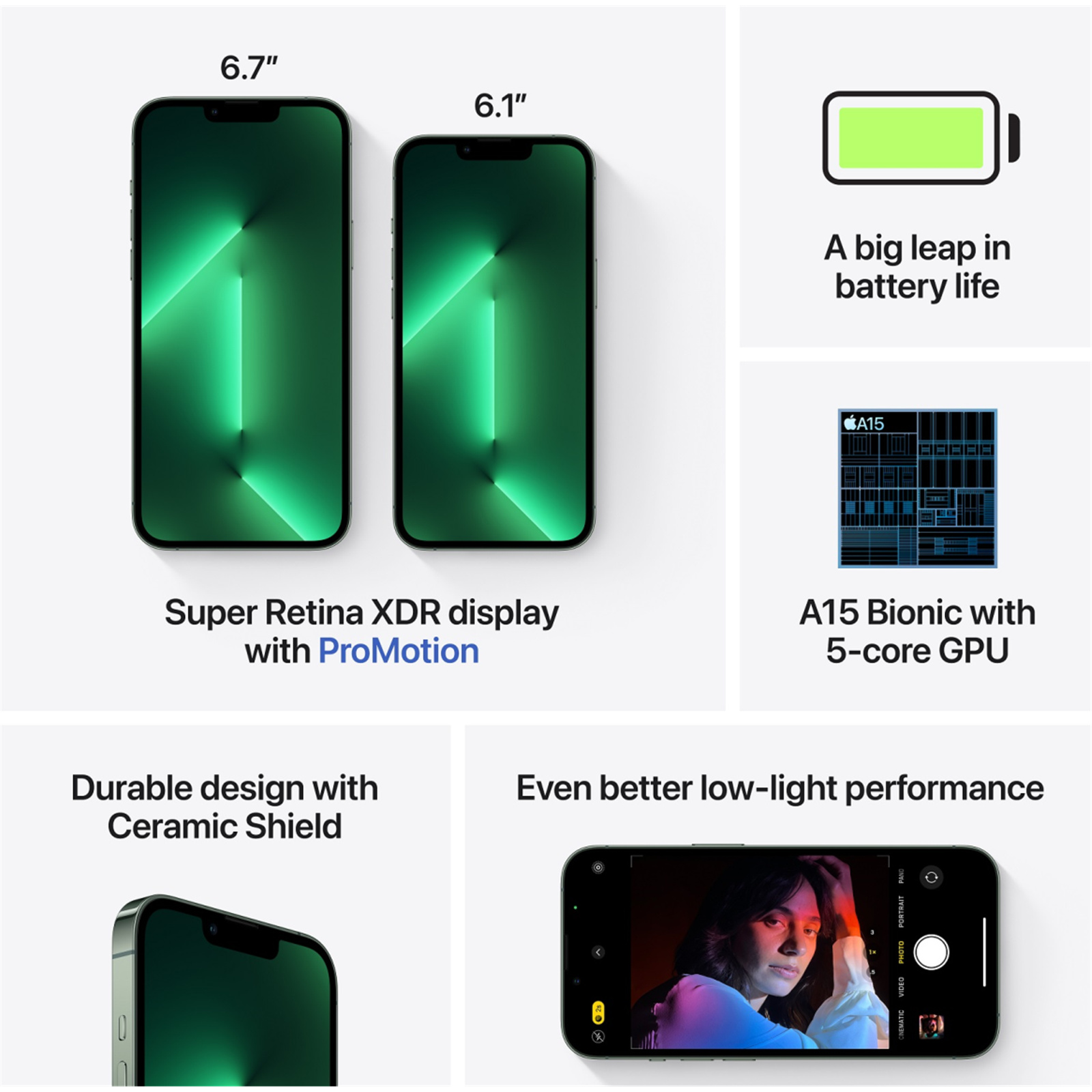 For more information: https://www.apple.com/nz/iphone-13-pro/specs/