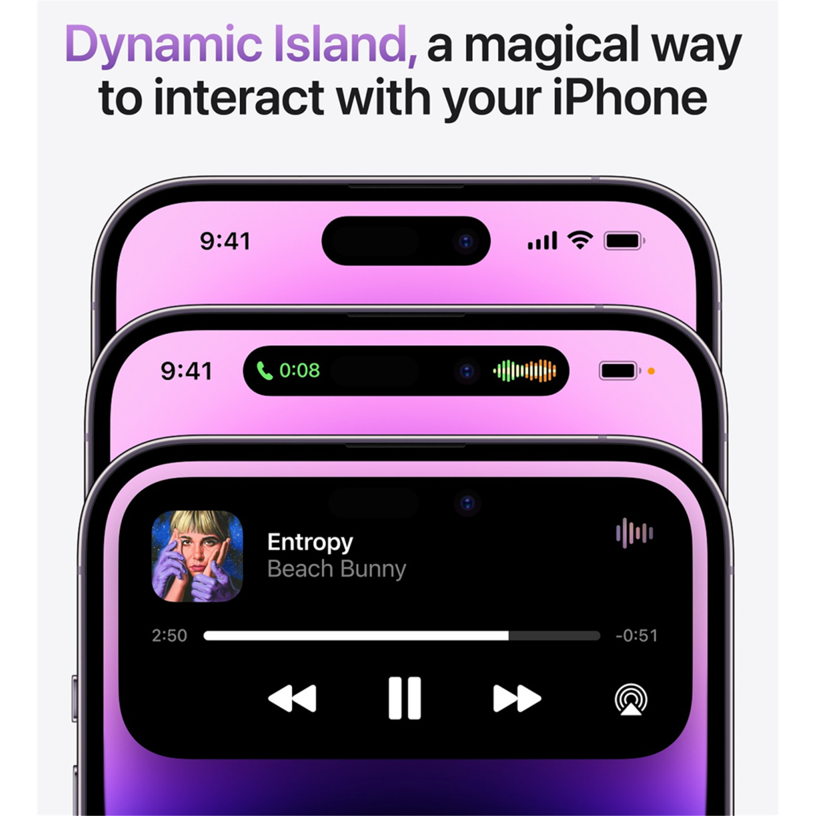 3. iPhone 14 Pro and iPhone 14 Pro Max are splash-, water- and dust-resistant, and were tested under controlled laboratory conditions with a rating of IP68 under IEC standard 60529 (maximum depth of 6 metres for up to 30 minutes). Splash, water and dust resistance are not permanent conditions, and resistance might decrease as a result of normal wear. Do not attempt to charge a wet iPhone; refer to the user guide for cleaning and drying instructions. Liquid damage is not covered under warranty but you might have rights under consumer law.