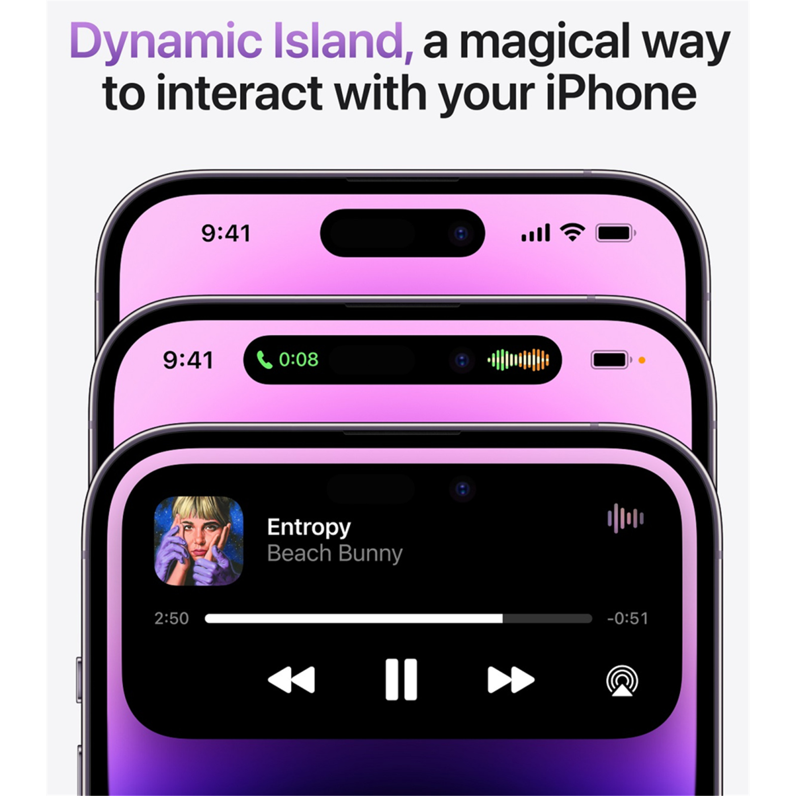 3. iPhone 14 Pro and iPhone 14 Pro Max are splash-, water- and dust-resistant, and were tested under controlled laboratory conditions with a rating of IP68 under IEC standard 60529 (maximum depth of 6 metres for up to 30 minutes). Splash, water and dust resistance are not permanent conditions, and resistance might decrease as a result of normal wear. Do not attempt to charge a wet iPhone; refer to the user guide for cleaning and drying instructions. Liquid damage is not covered under warranty but you might have rights under consumer law.