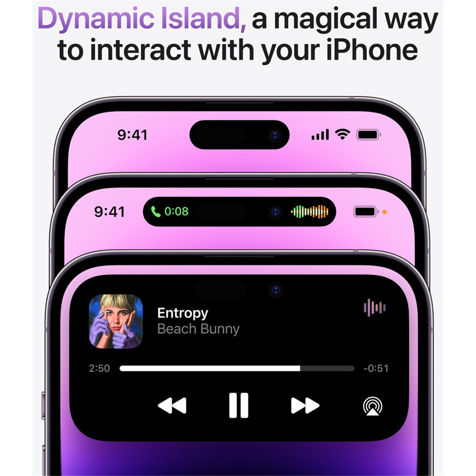 3. iPhone 14 Pro and iPhone 14 Pro Max are splash-, water- and dust-resistant, and were tested under controlled laboratory conditions with a rating of IP68 under IEC standard 60529 (maximum depth of 6 metres for up to 30 minutes). Splash, water and dust resistance are not permanent conditions, and resistance might decrease as a result of normal wear. Do not attempt to charge a wet iPhone; refer to the user guide for cleaning and drying instructions. Liquid damage is not covered under warranty but you might have rights under consumer law.