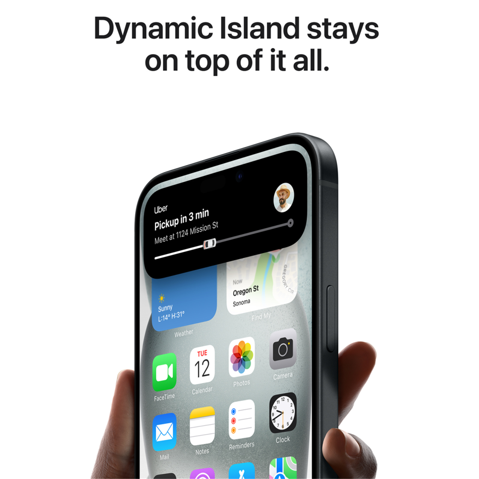 *The iPhone 15 display has rounded corners that follow a beautiful curved design, and these corners are within a standard rectangle. When measured as a standard rectangular shape, the screen is 6.12 inches diagonally (actual viewable area is less).