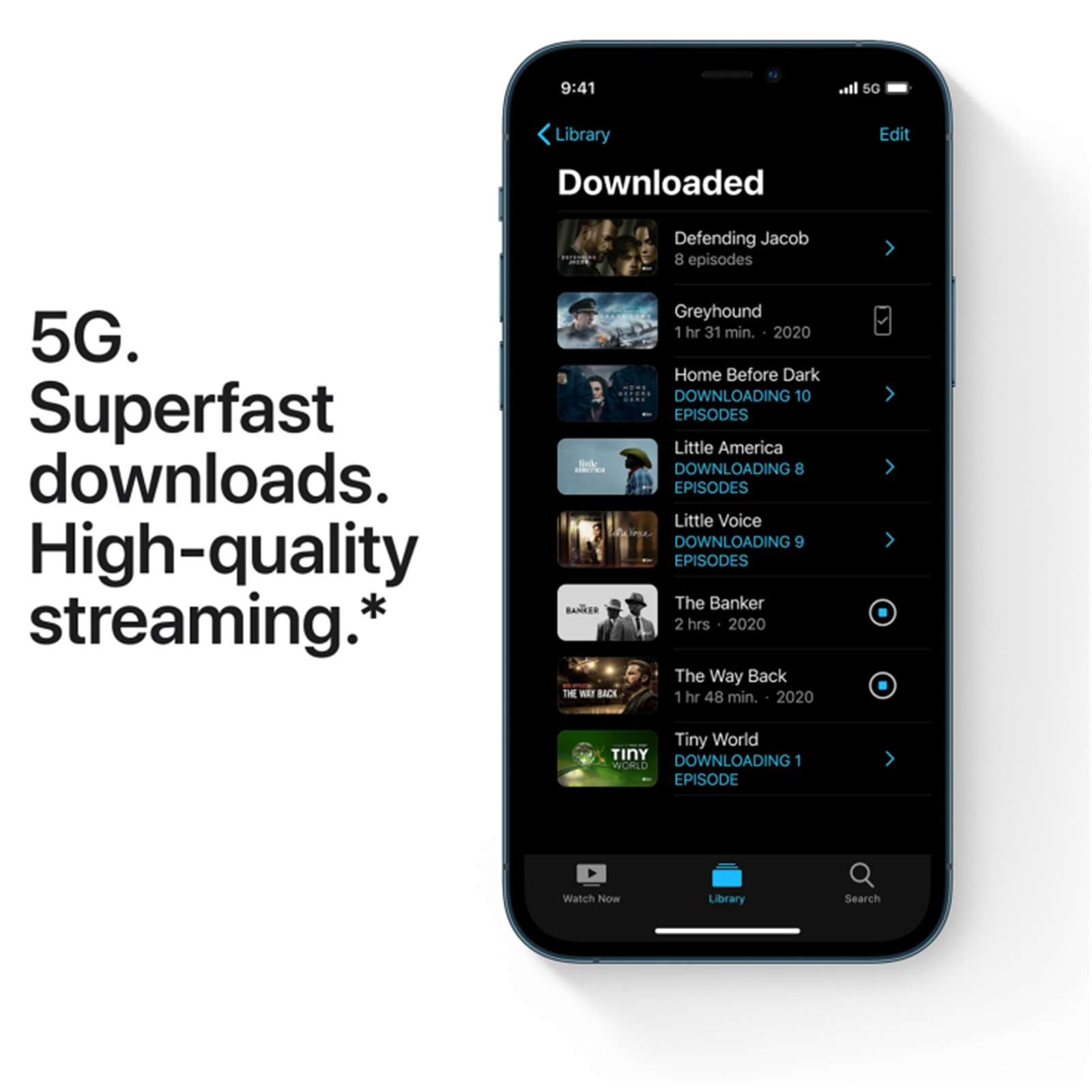 *Data plan required. 5G is available in select markets and through select carriers. Speeds vary based on site conditions and carrier. For details on 5G support, contact your carrier and see apple.com/iphone/cellular.