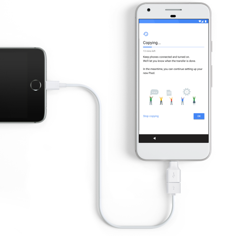 Connect -- Connect your old iPhone® or Android device to your new Pixel with the Quick Switch Adapter. ‡