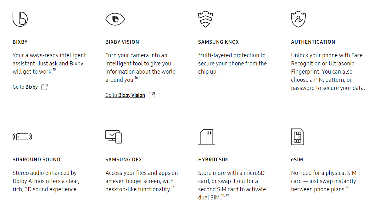 Galaxy S20, S20+, and S20 Ultra come with massive storage built in for all your high-res videos and photos. You can then expand it with a microSD card for even more storage - up to 1.5TB total.10