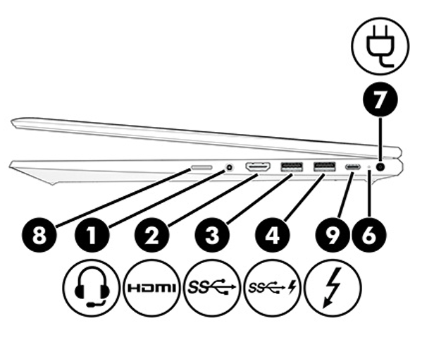 9) USB Type-C ThunderboltTM port with HP Sleep and Charge