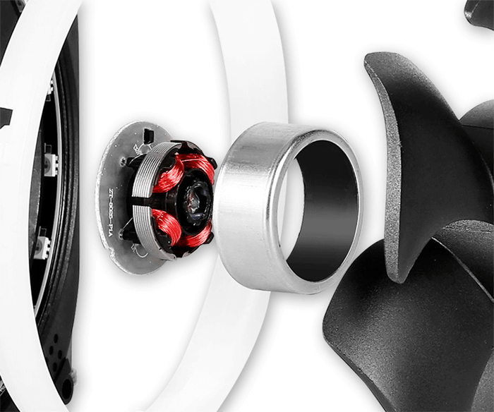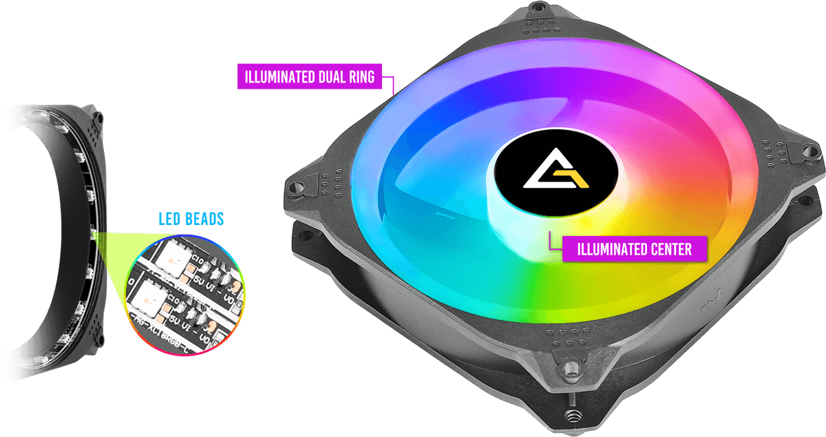 The Prizm x 120 ARGB case fan features a dual-ring aperture design, which allows you to display ARGB effects on both sides of the assembly.