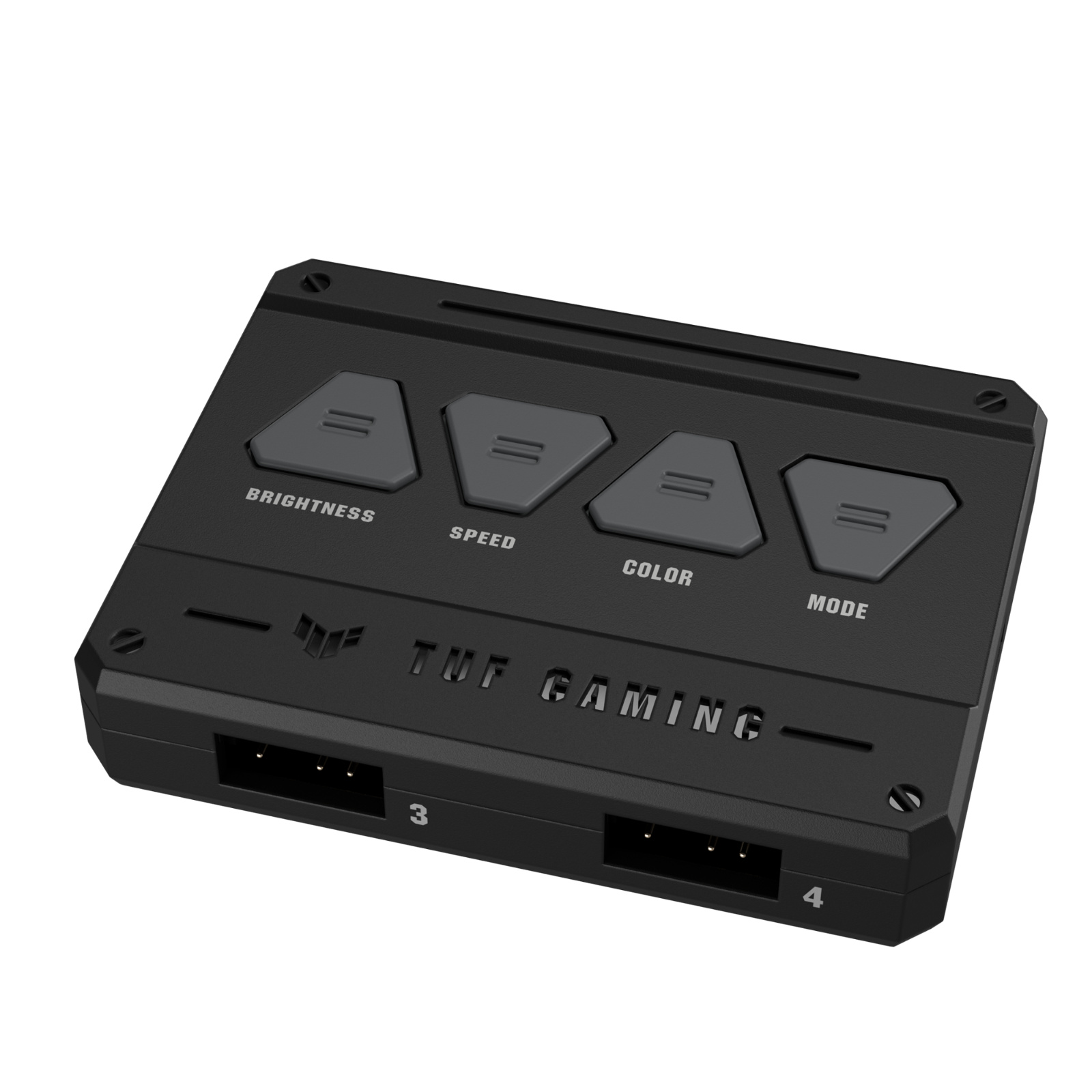A bundled ARGB controller hub supports up to four fans, features four buttons to reset and control lighting effects, and fully supports Aura Sync for coordinated illumination throughout your system. Meanwhile, a pair of magnets on the back simplify installation and cable management.