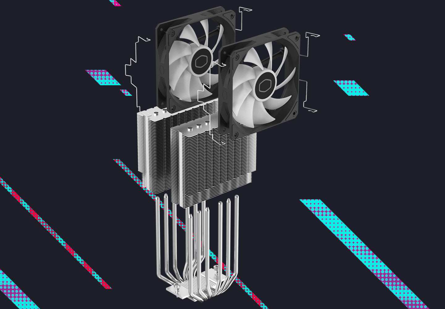 Cooler Master Hyper 620S RGB CPU Cooler with 2 X 120MM RGB LED PWM Fan, 6 Heat Pipes / Direct Contact / Aluminum Fins INTEL: LGA 1700/1200, AMD AM4 / AM5