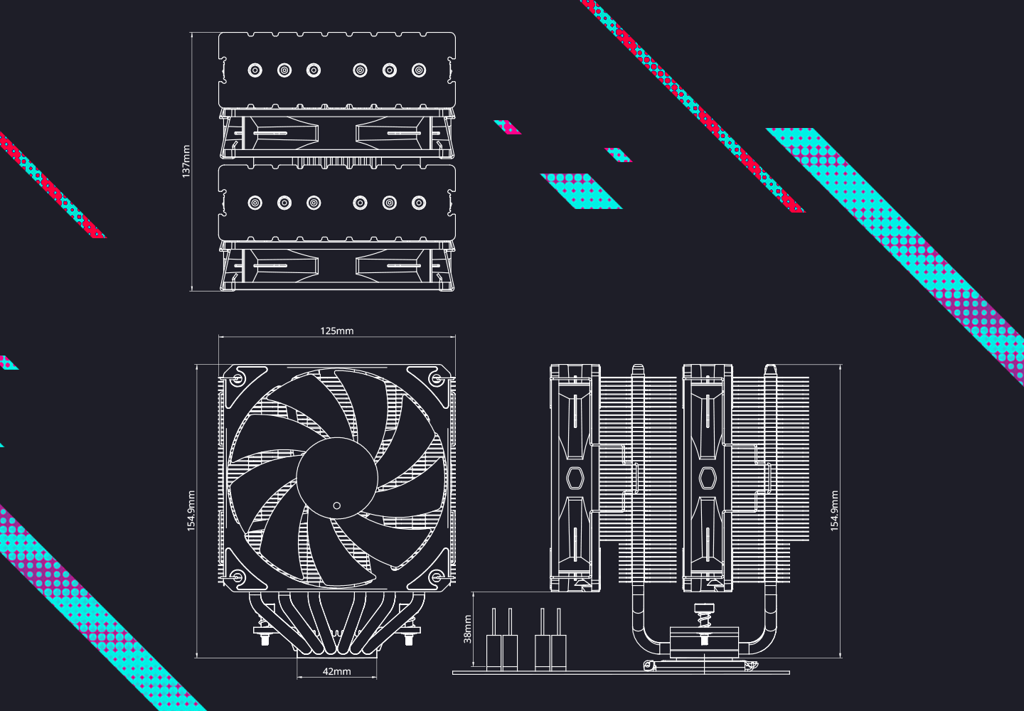 Compatible with most case requirements thanks to low-profile heat pipes and a total height of 154.9mm.