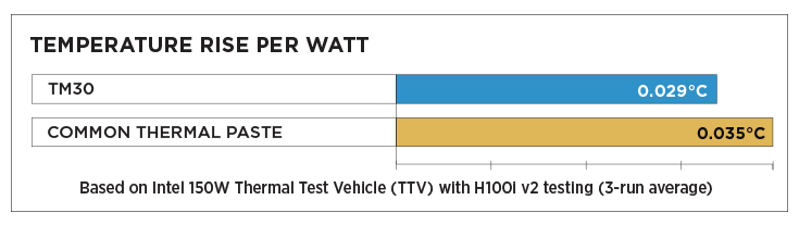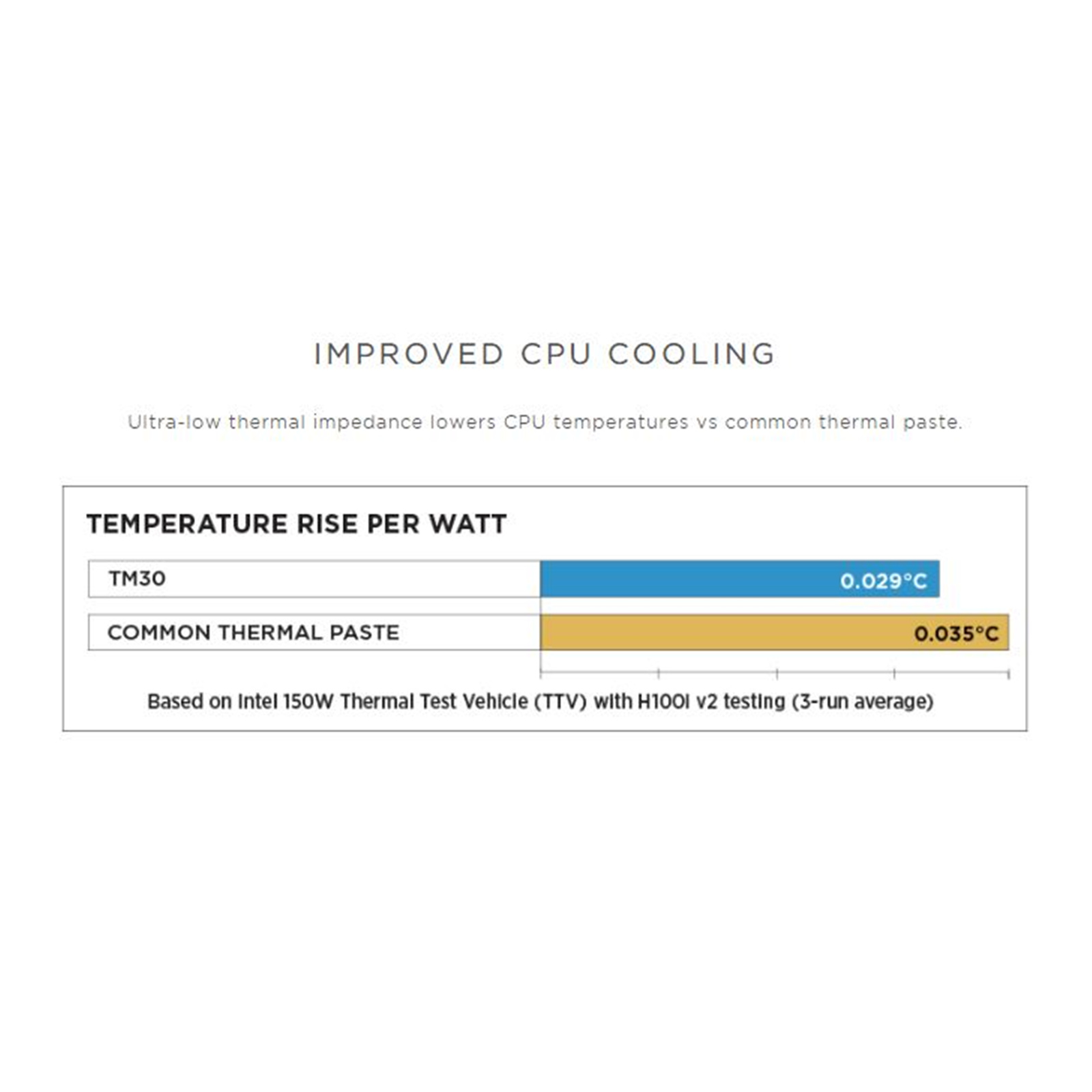 CORSAIR TM30's low viscosity allows it to easily fill microscopic abrasions and channels in your CPU's heatspreader and cooler's contact plate, for maximum thermal transfer area.