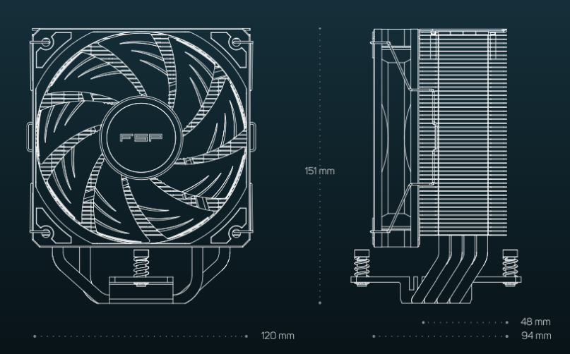 With dimensions of 94mm in depth and 151mm in height, it offers 100% RAM clearance.