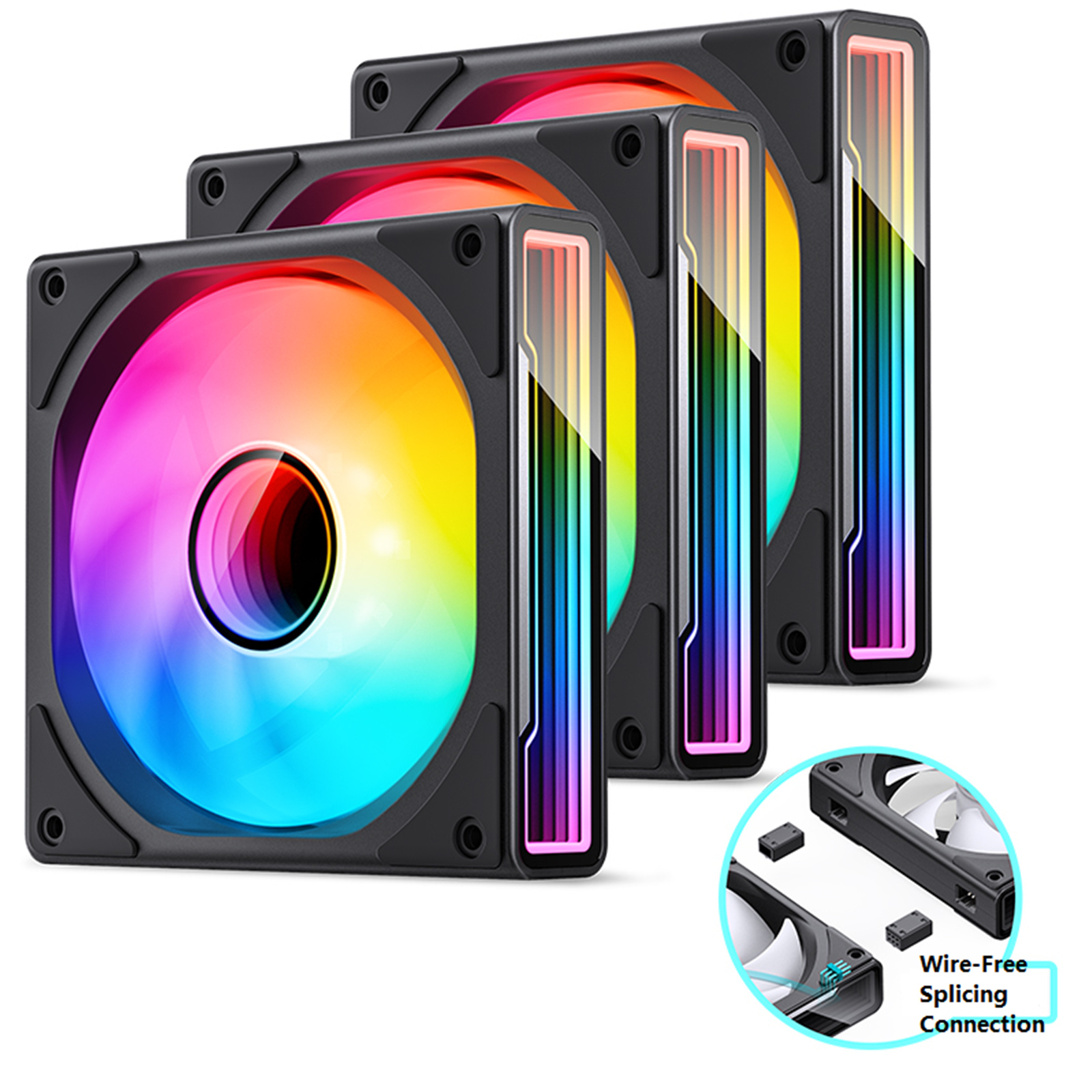 Jonsbo ZK-120 ARGB Infinity Mirror 120mm Case Cooling Fan, Wire-Free Splicing Connection, 3 Pack - Black