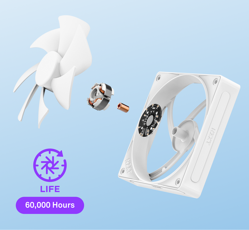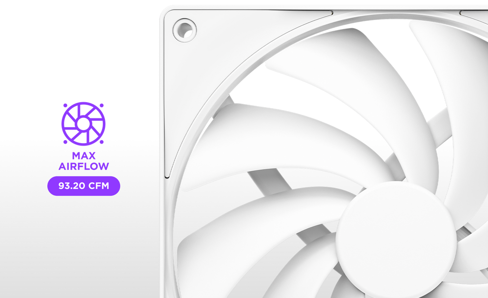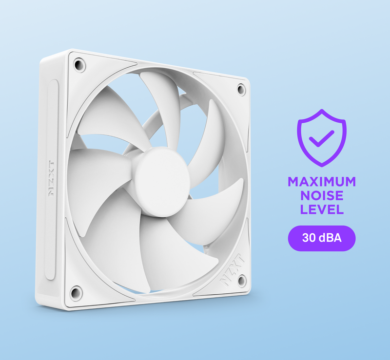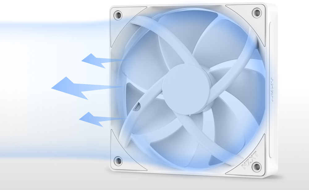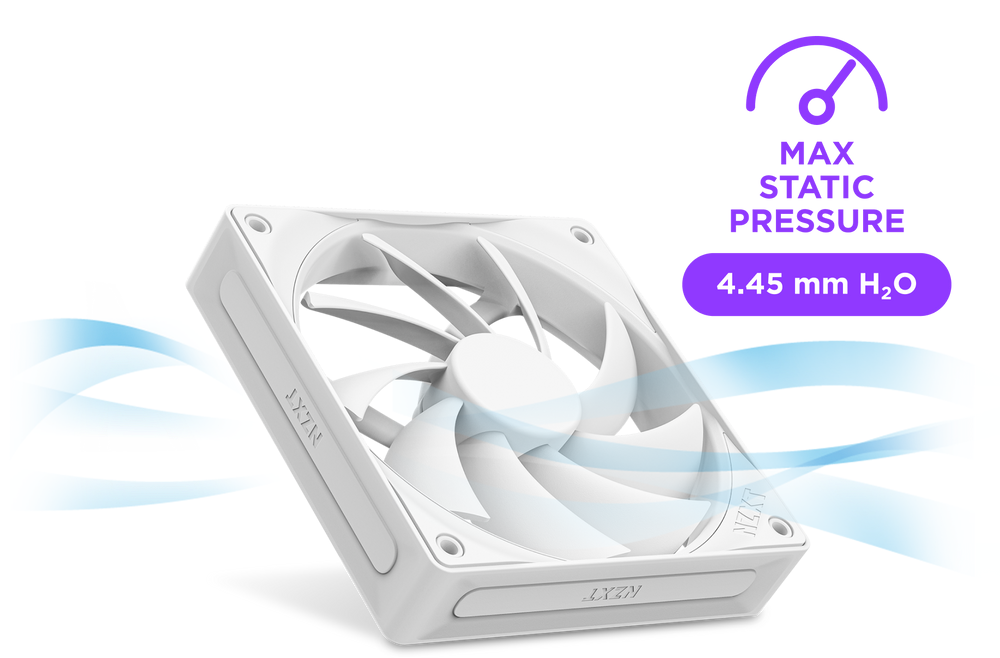 NZXT Static Pressure Fans deliver strong airflow in tight spaces, like radiators and heatsinks. With optimized blades, chamfered frame, and fluid dynamic bearings, they offer high-performance, low-noise cooling.