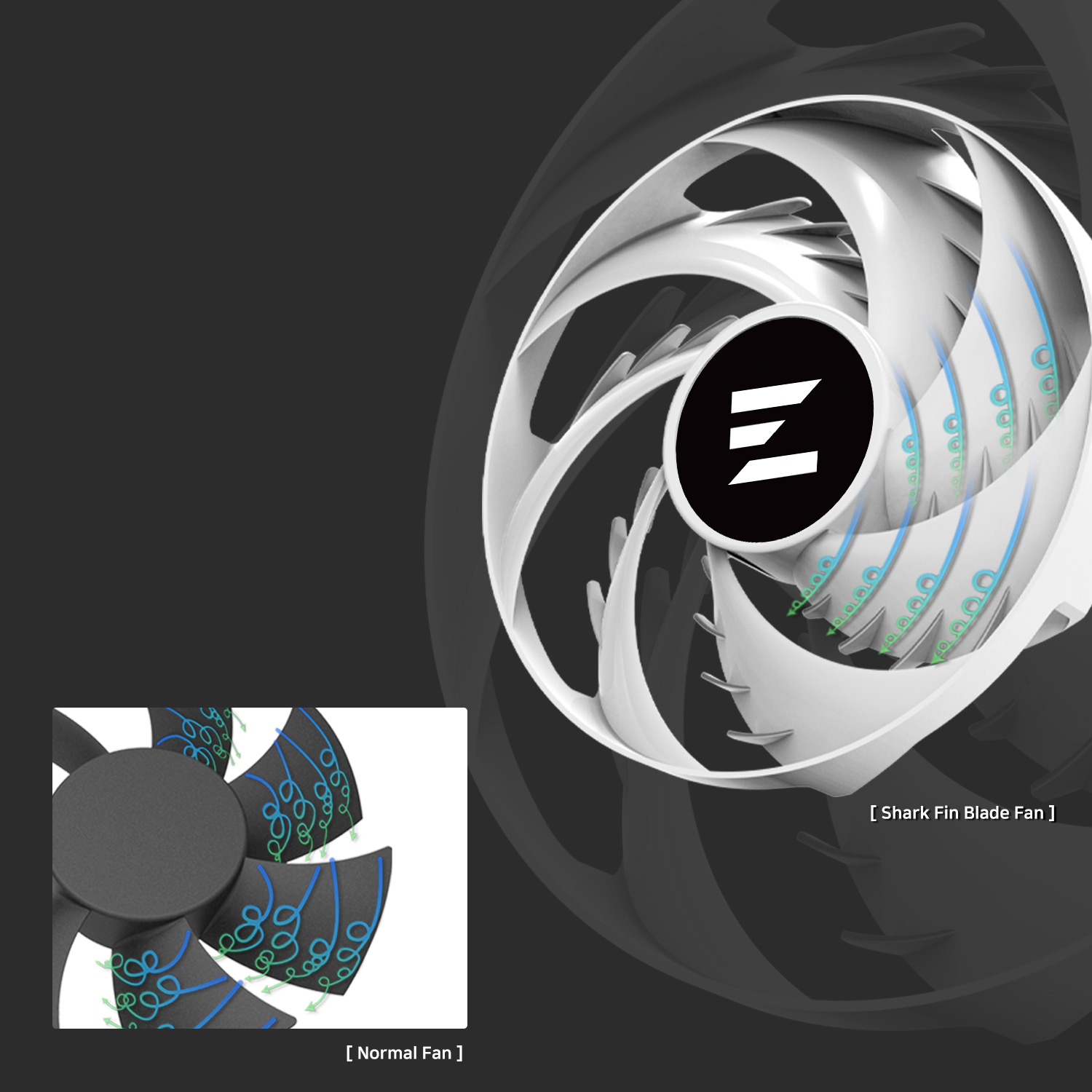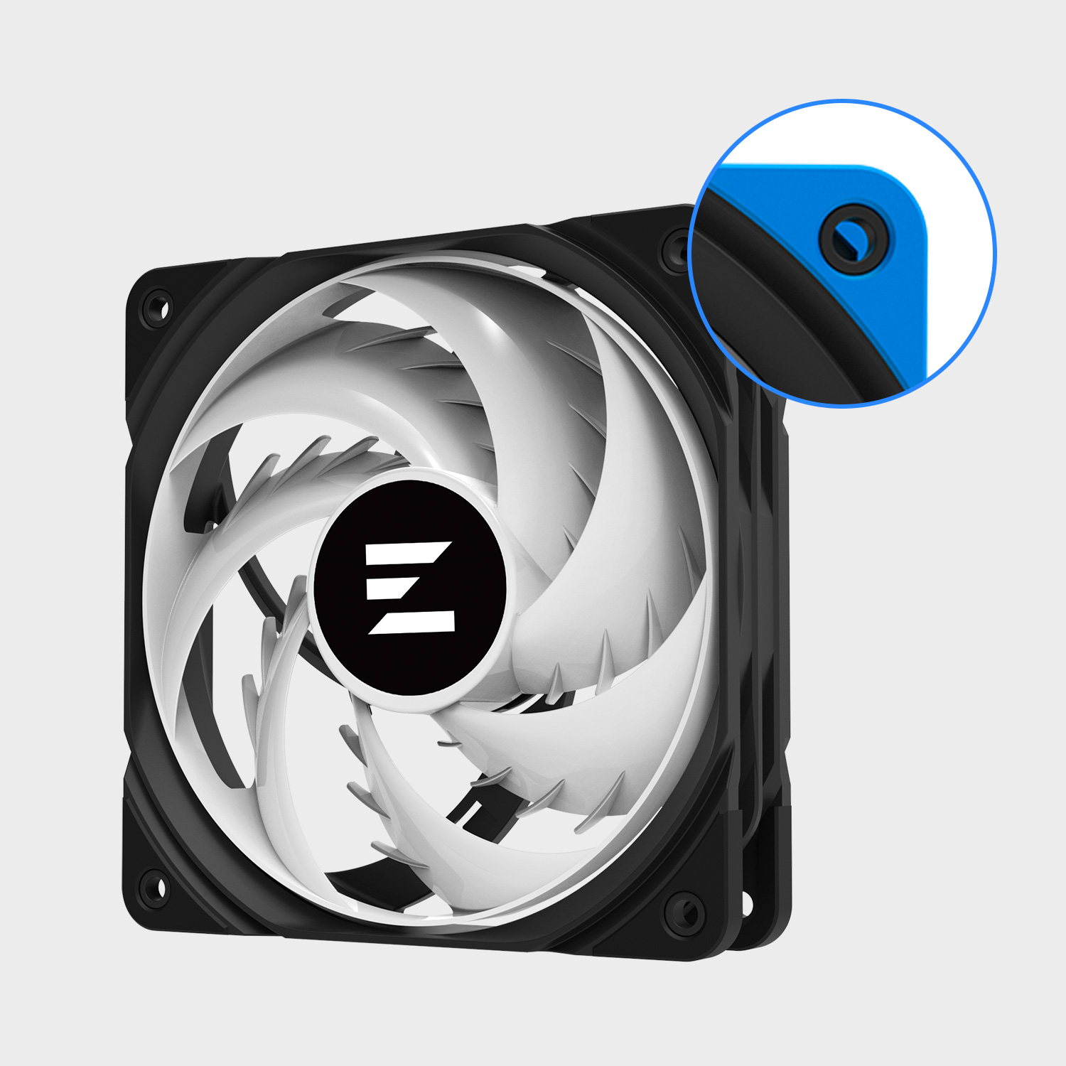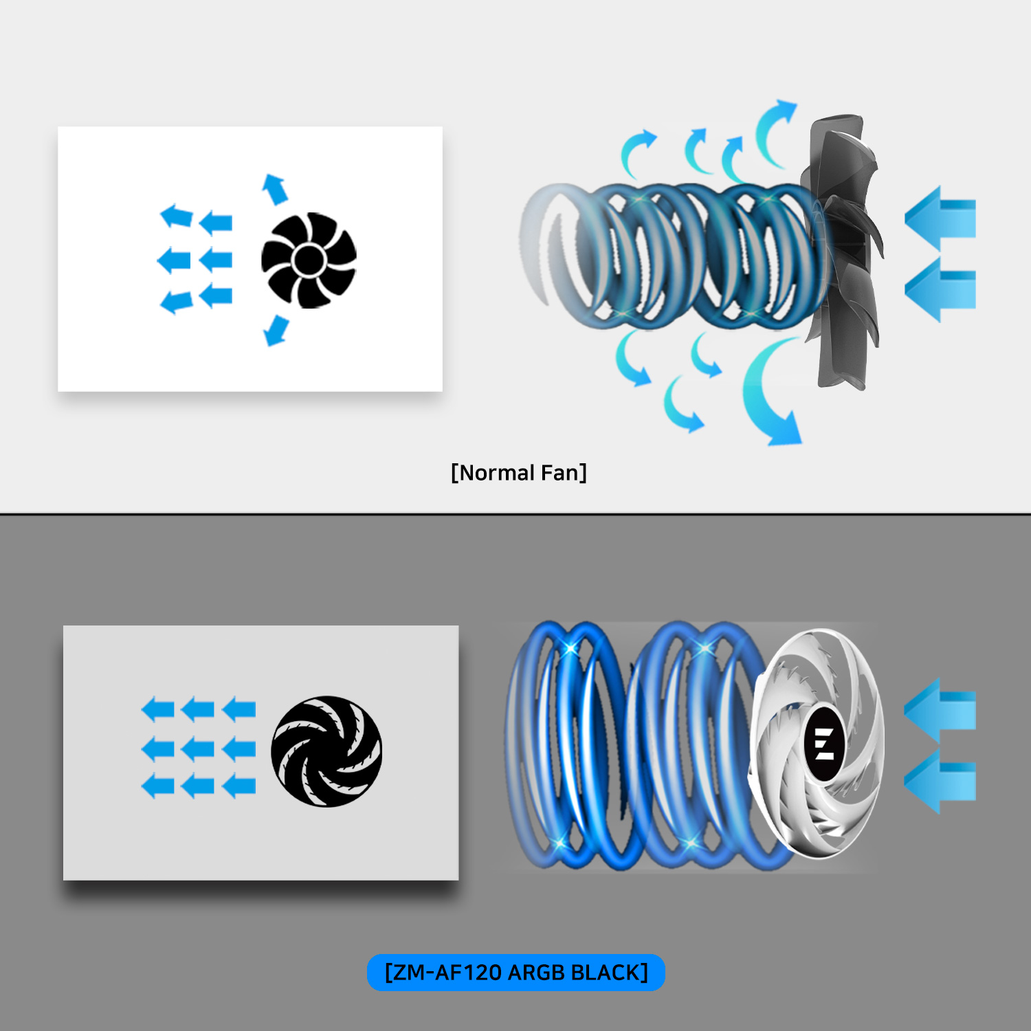 Zalman AF120 annular fan is designed to prevent vortex and backflow at the end of the wings, which can improve efficiency and stability by suppressing vibration.