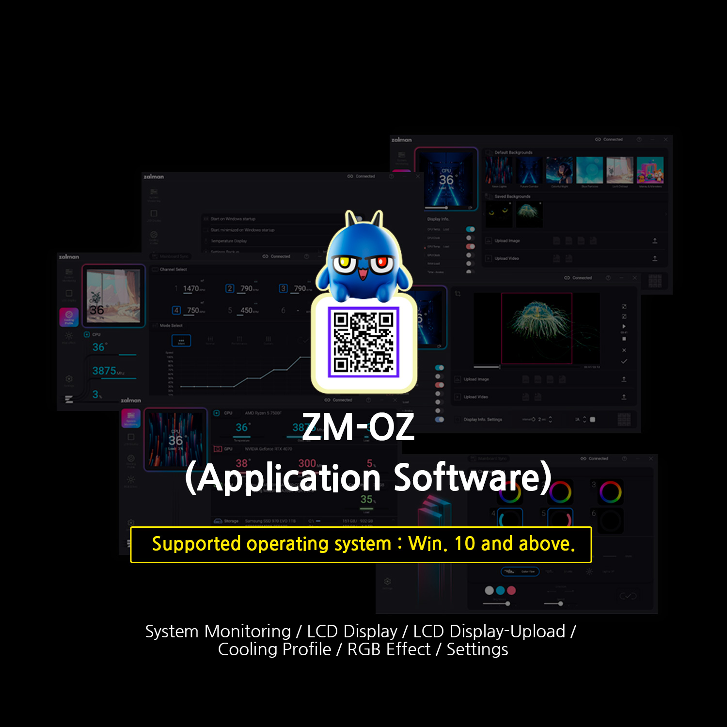 Give visit ZALMAN official website (https://www.zalman.com) to find the corresponding product software and install it. (Supported operating system : Win. 10 and above.)