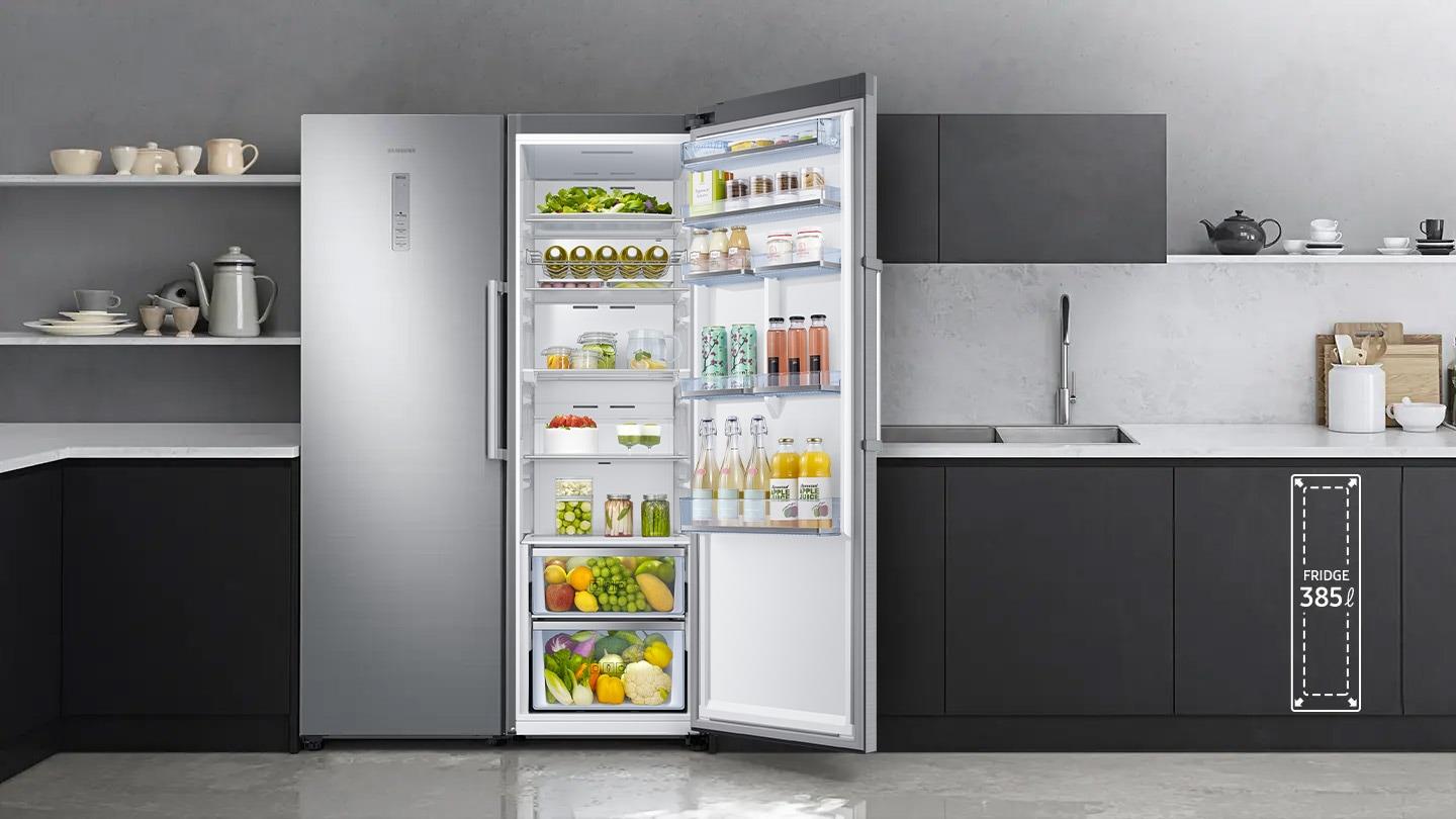 Has a large capacity, but in a Cabinet Fit design that will fit harmoniously into your existing kitchen. There's plenty of room* to store your weekly grocery shopping, and it's easy to keep everything neatly and efficiently organised, so you can quickly find and take out the things you need.