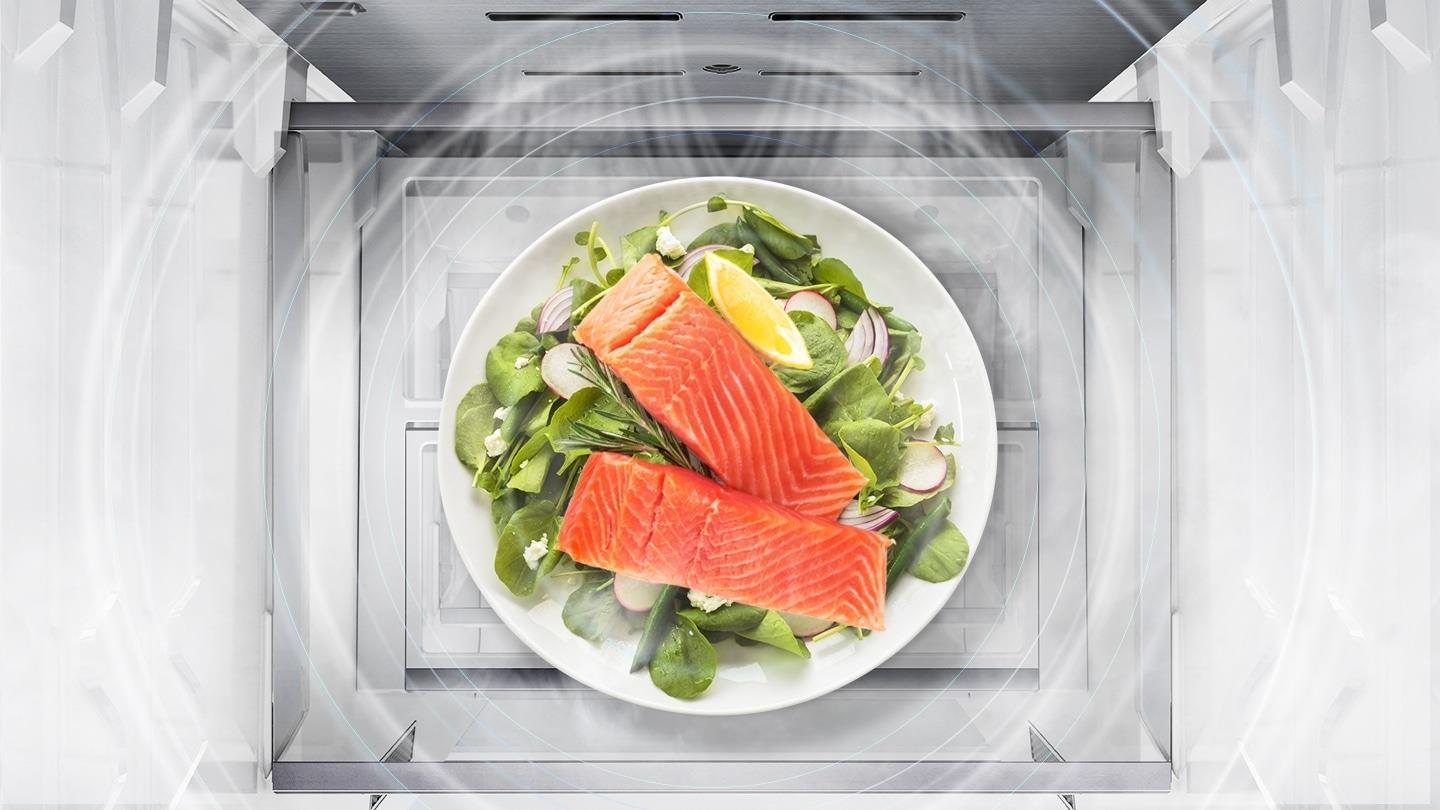 No Frost technology enhances the circulation of air to maintain a constant temperature in every corner of the refrigerator, which helps prevent the build up of frost and ice. It also reaches the target temperature quickly, increases the cooling system's durability, and avoids wasting power on defrosting.