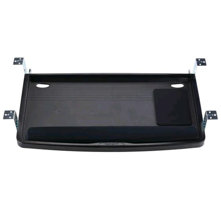 - Extra-wide 26" tray can also hold a wrist rest, mouse and mouse pad alongside the keyboard