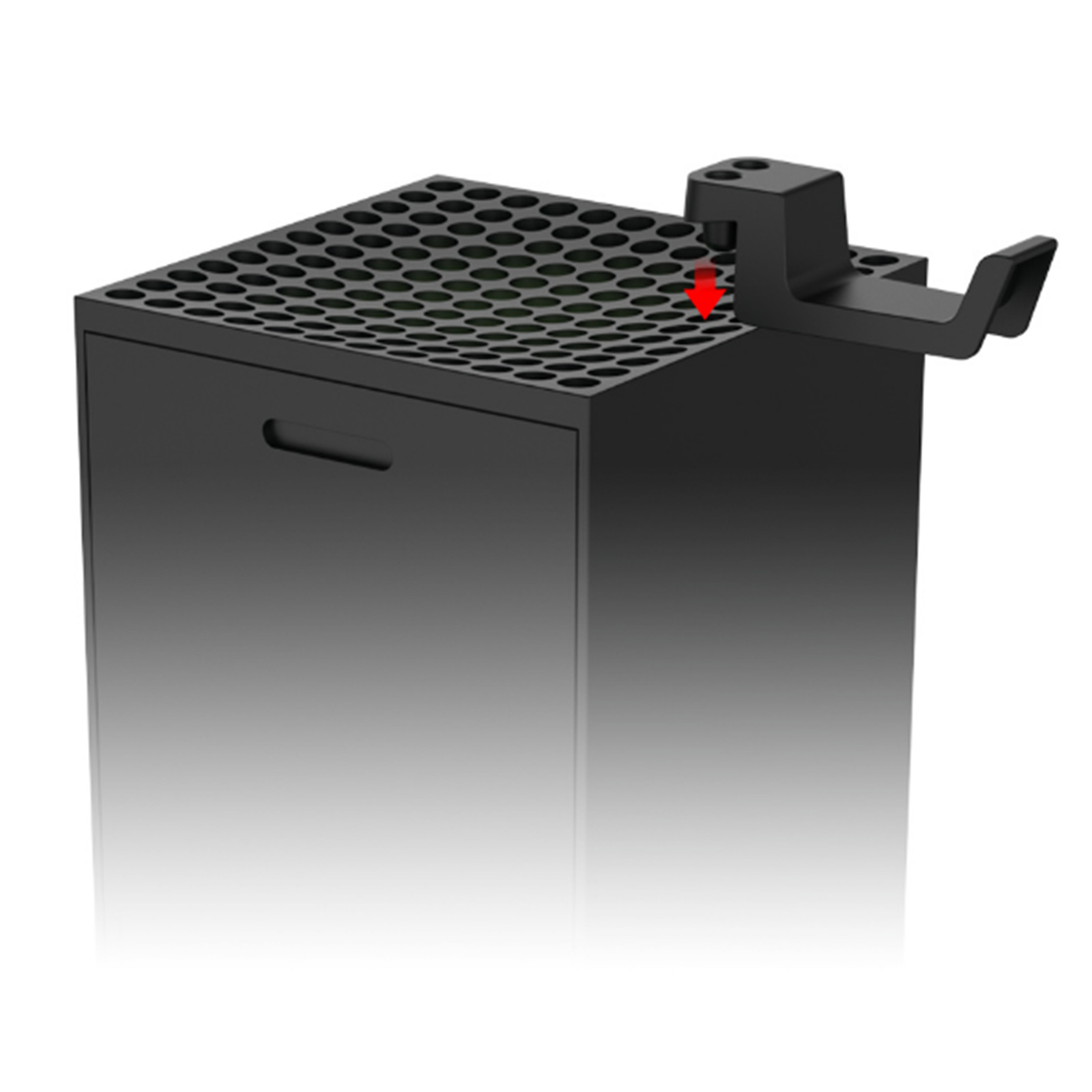 3.Easy to use, the rack can be installed by simply snapping it on the top edge of the Xboxes series X Console. The rack is equipped with soft silicone to protect the console from damage