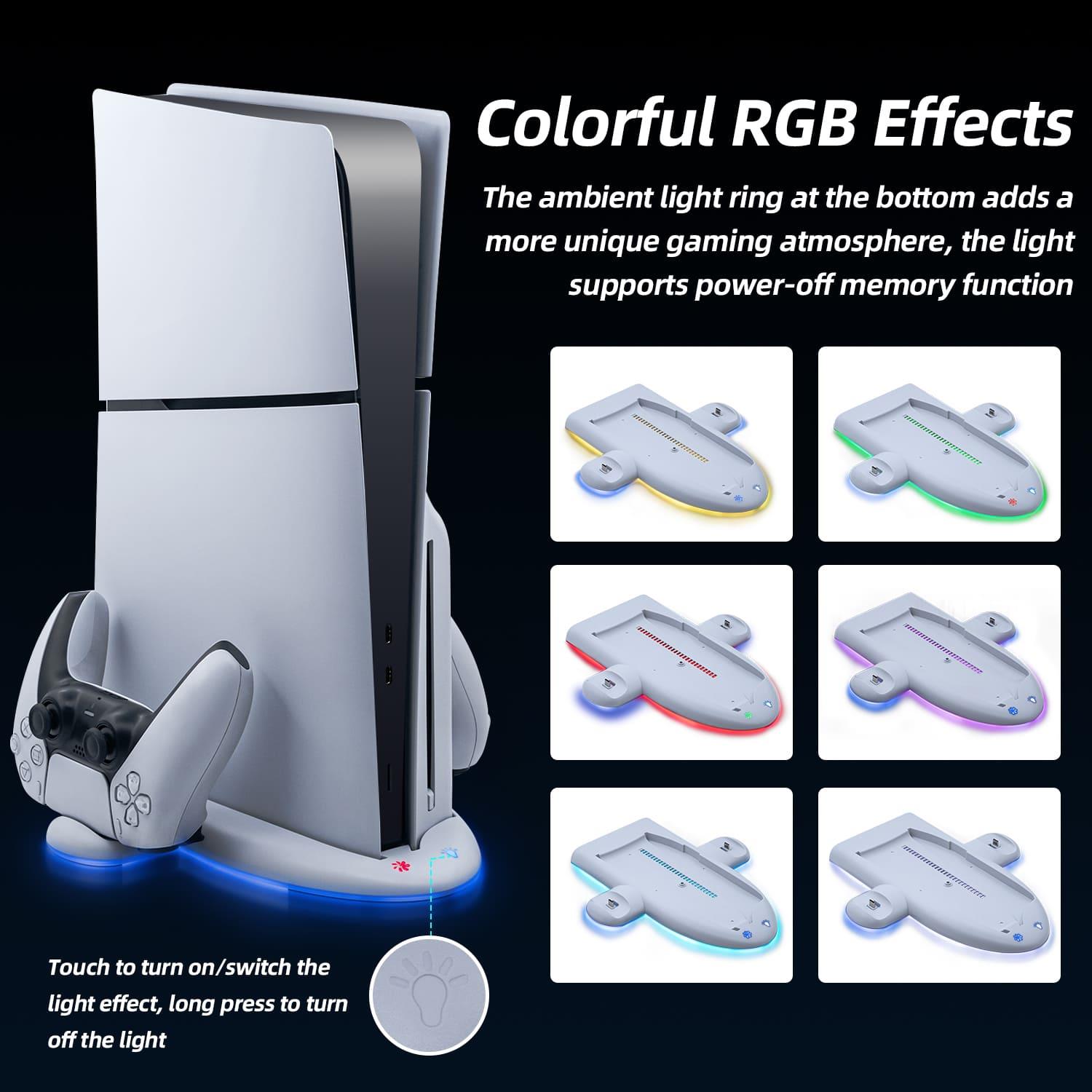 Designed to be the ultimate accessory for your PS5 Slim, this charging dock goes beyond just charging controllers. Its multifunctional capabilities include efficient cooling, stunning RGB lighting, and a design that seamlessly integrates with your PS5 Slim, making it an essential addition to enhance your gaming experience.