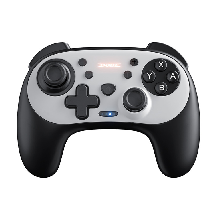 The DOBE Panda Wireless Controller is also designed for user convenience. It supports host wake-up functionality, enabling the controller to power on the console remotely. The controller includes a dedicated code button for easy connection and pairing, and a charging indicator to display battery status, ensuring users are always aware when it's time to recharge.