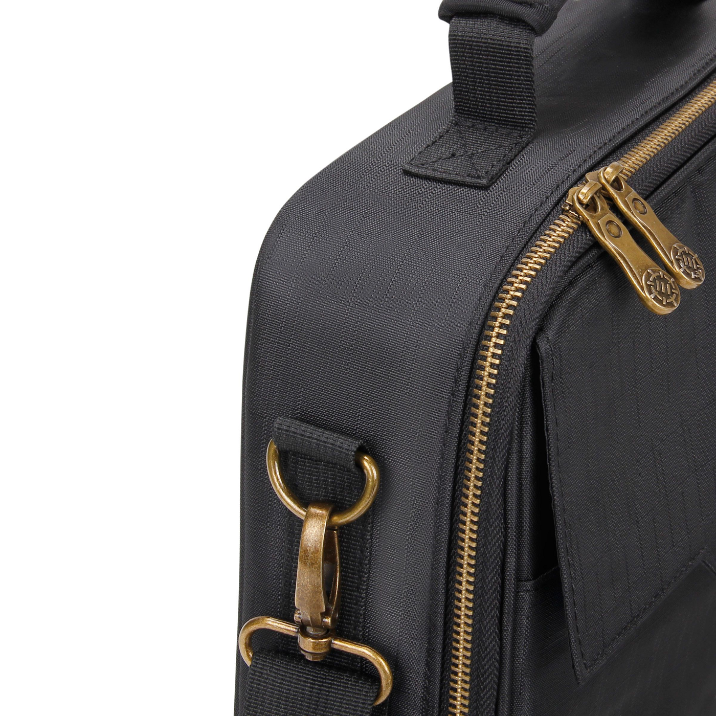 The ENHANCE Trading Card Travel Bag features an adjustable shoulder strap and a rugged carrying handle, built to last and endure daily use. The compact design is ideal for bringing along in your car, storing underneath your desk, or even on a plane.