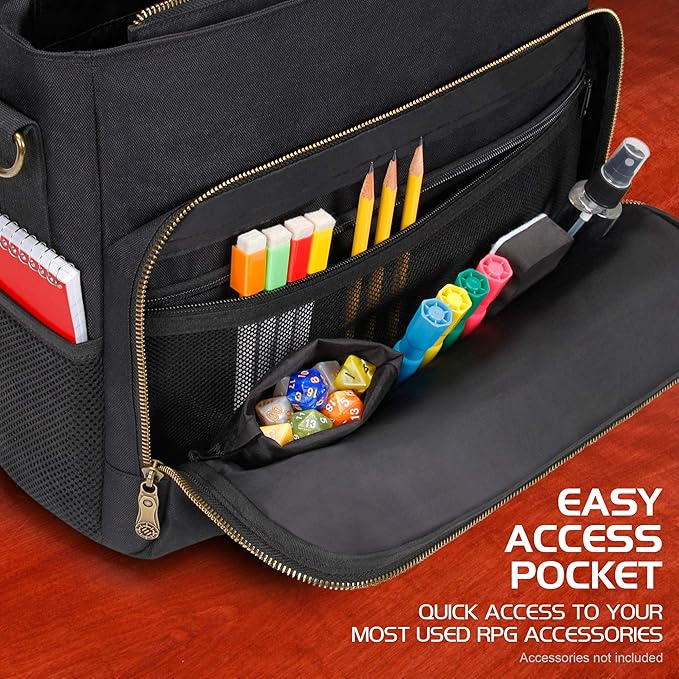 Spacious zippered front pocket can store dice, pencils, markers, tokens, small journals and much more to hold your entire game night in one convenient travel bag.