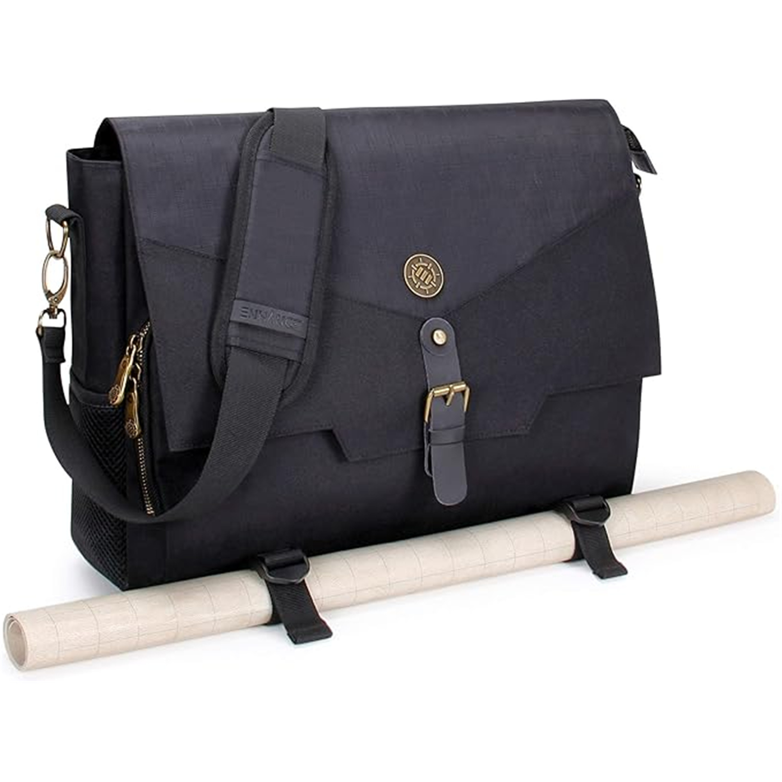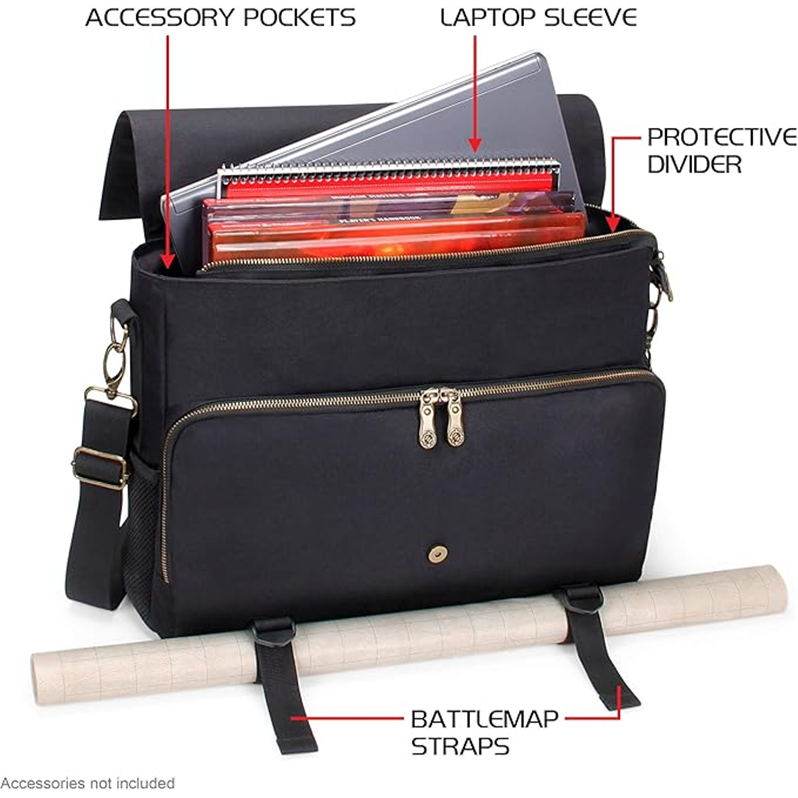 Crossbody style messenger bag with room for up to 2-4 of your favorite RPG books complete with a padded divider to organize binders, character sheets and more.