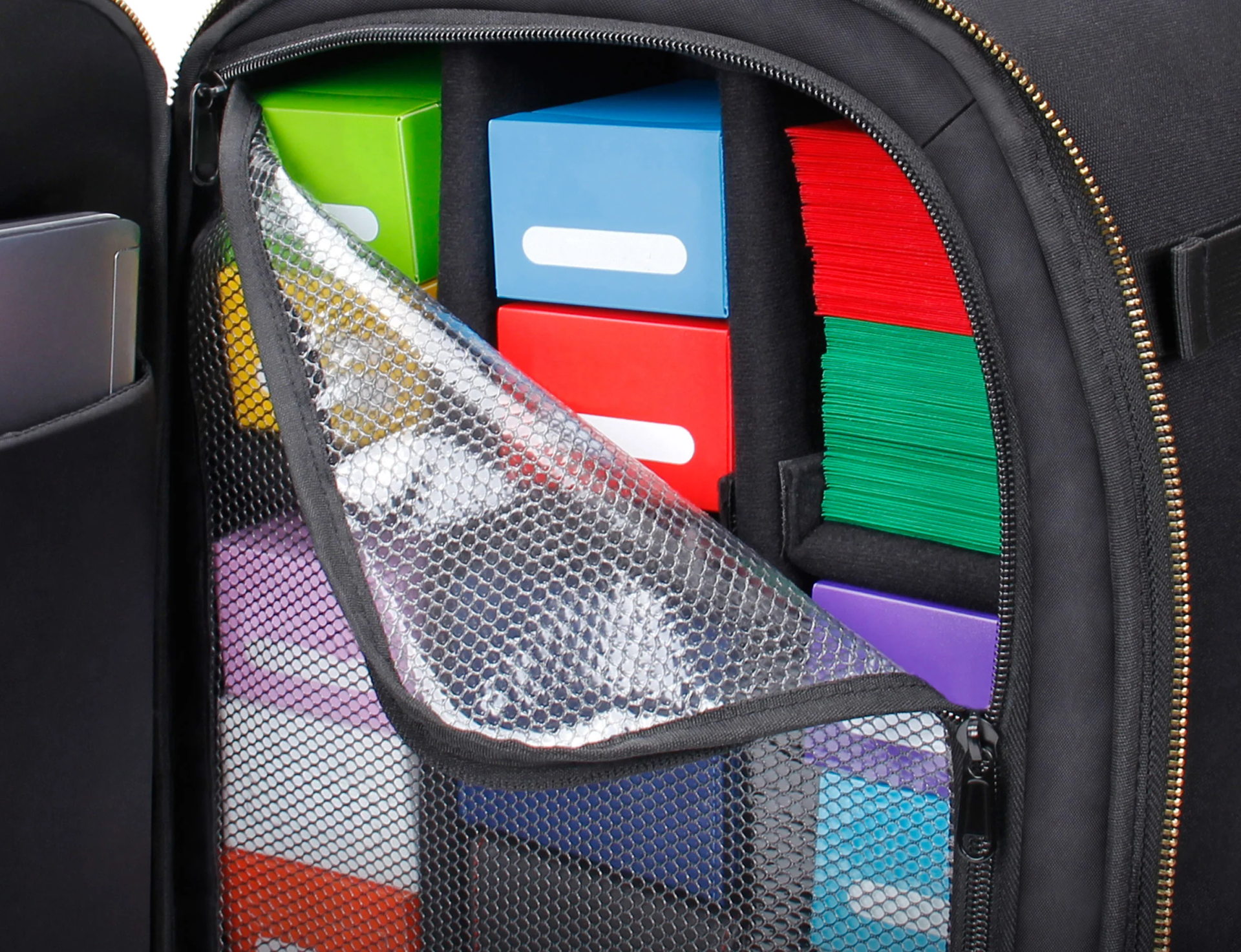 Exterior pockets large enough to store various card games and accessories including MTG tokens, notepads, pencils, life counters, and much more.