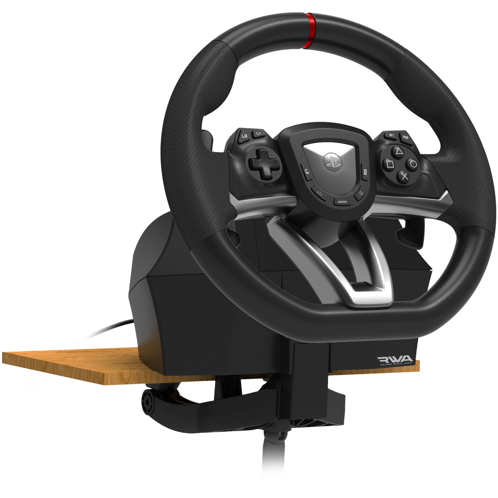 HORI brings the best in build-quality, customization options, and authentic racing simulation with the Racing Wheel APEX for the PlayStation 5 and PlayStation 4. HORI's design team has brought all the features and quality of a full-size racing wheel at an affordable price. Massive 270 degree turn-ratio - Completely programmable & adjustable, and PS5, PS4 & PC compatible. The Racing Wheel APEX clamps securely to your table or racing wheel stand with sturdy clamps and steel parts. The full-size pedals are built to last. Change from 270 degree to 180 degree turn ratio on the fly and fine tune other settings such as dead zone, pedal sensitivity and more. Cross the finish line with the all new RWA: Racing Wheel APEX for PlayStation 5, PlayStation 4 and PC. Officially licensed by Sony.