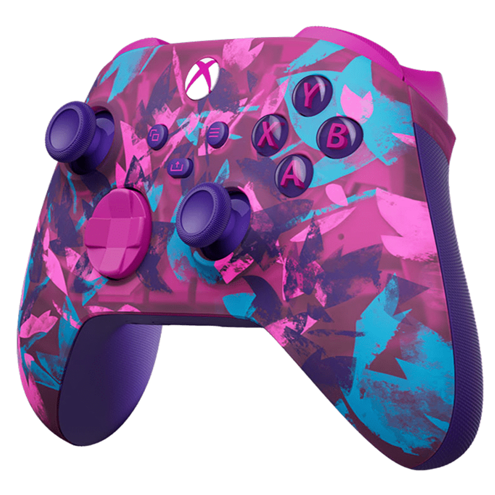 Textured triggers and bumpers | Vibrant pinks, purples and blues | Hybrid D-pad | Button mapping | Bluetooth® technology