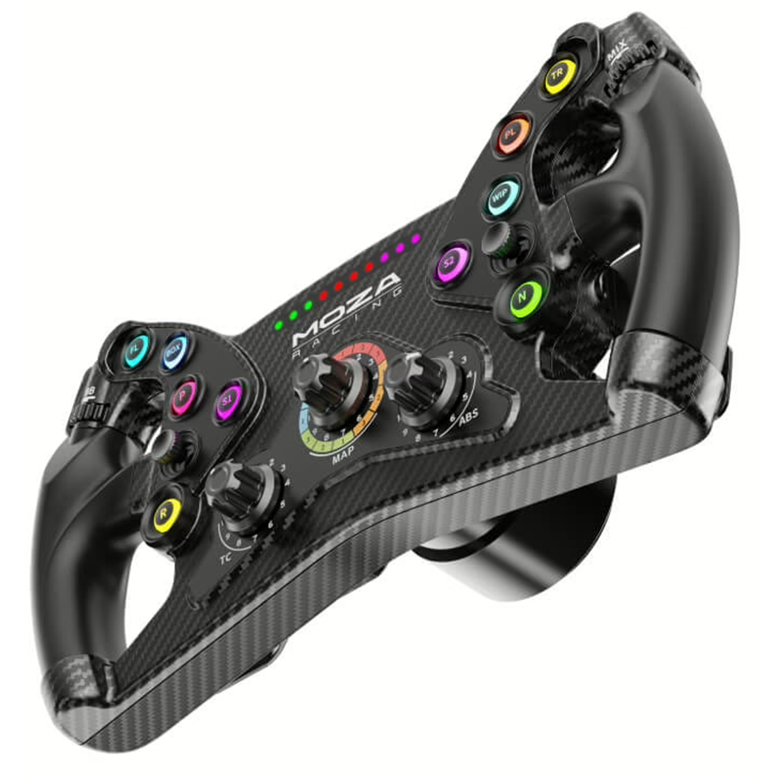 The MOZA KS offers 70 fully programmable input signals for all driving needs. It features thumb and rotary encoders for faster on-the-fly car adjustments, including brake bias, traction control, engine maps, ABS, and more. The two joysticks enable full menu navigation, keeping your hands on the wheel and eyes on the road.