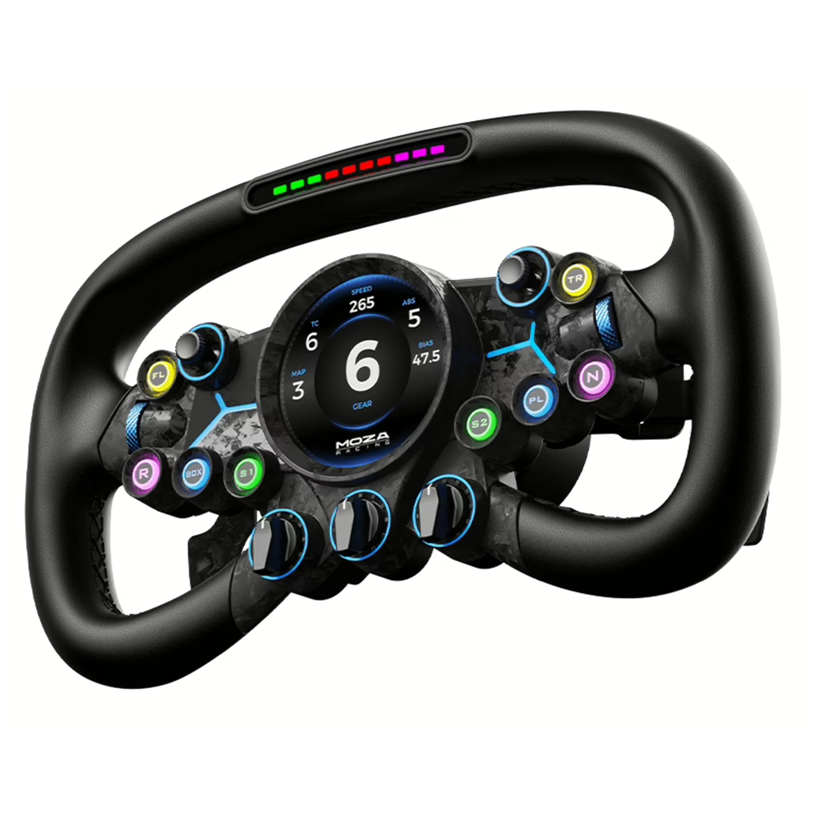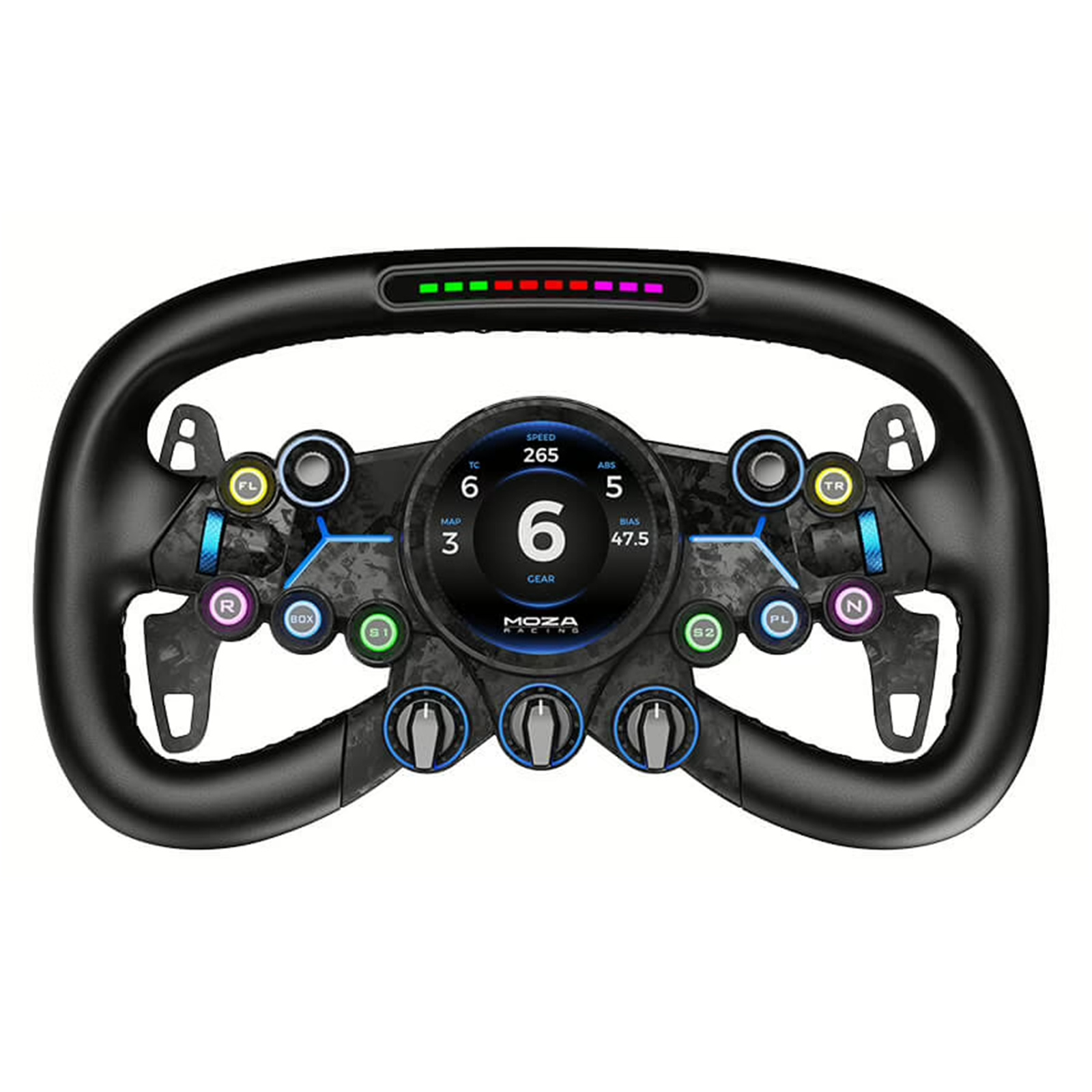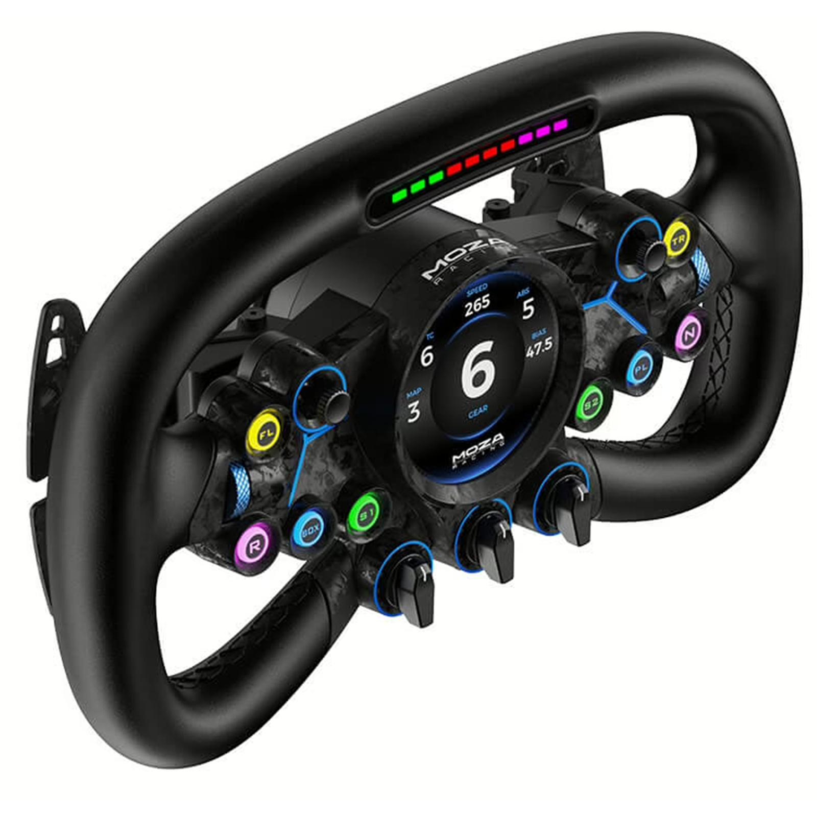 The MOZA Vision GS wheel features a 2.85-inch high-definition circular touch screen with a 60Hz refresh rate.