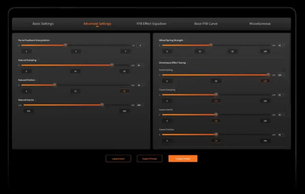 Breaks down FFB signals into individually tunable elements. Dial in your setup exactly how you like it-your wheel, your rules.