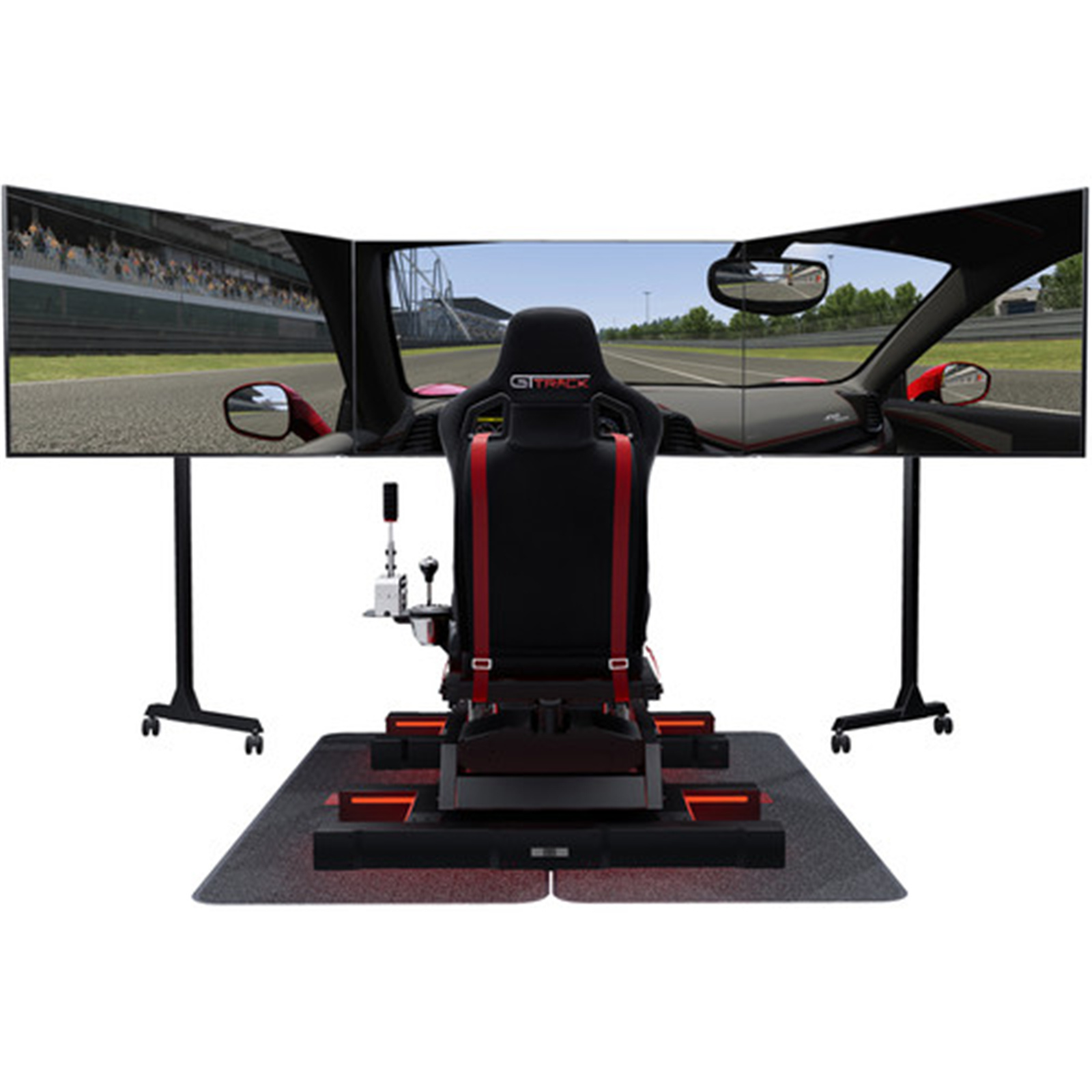 The Next Level Racing® Free Standing Triple Monitor Stand finishes off your racing simulator setup to give ultimate immersion to race like a professional. The stand supports triple screens from 32 - 65" allowing up to a huge 195" of peripheral vision for incredible realism. The stand includes both lockable wheels for easy movement and height adjustable feet, the choice is yours. The design is based on customer feedback allowing you to have your screens in the perfect position of your choice whether that is directly behind the wheel or further back from your cockpit and allowing you to change the position of the screens easily and quickly. Being completely free standing and with lockable wheels it also makes it the perfect monitor stand for events, trade shows and sim racing centres.