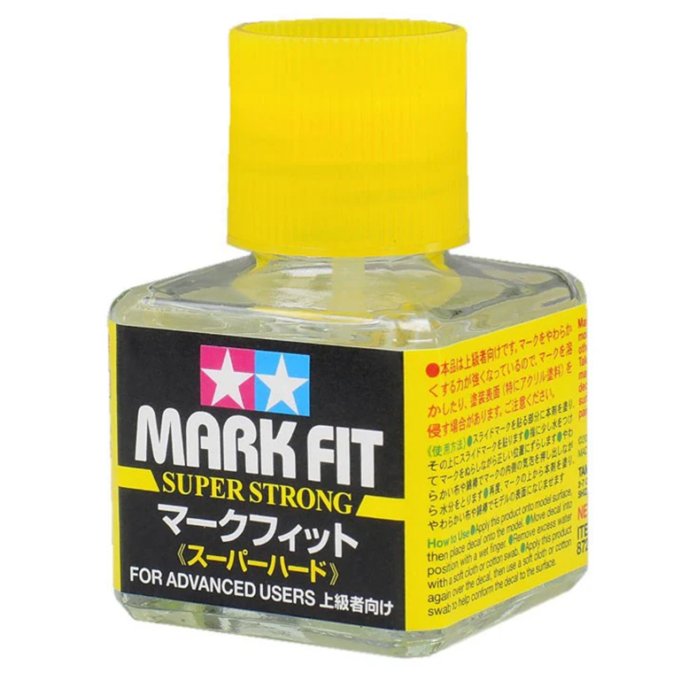 The Tamiya Mark Fit (Super Strong) is a premium finishing material designed for model builders who seek precision and efficiency when applying decals. Part of Tamiya's renowned finishing materials range, this formula is stronger than standard Mark Fit products, providing enhanced adhesion and improved decal application results.