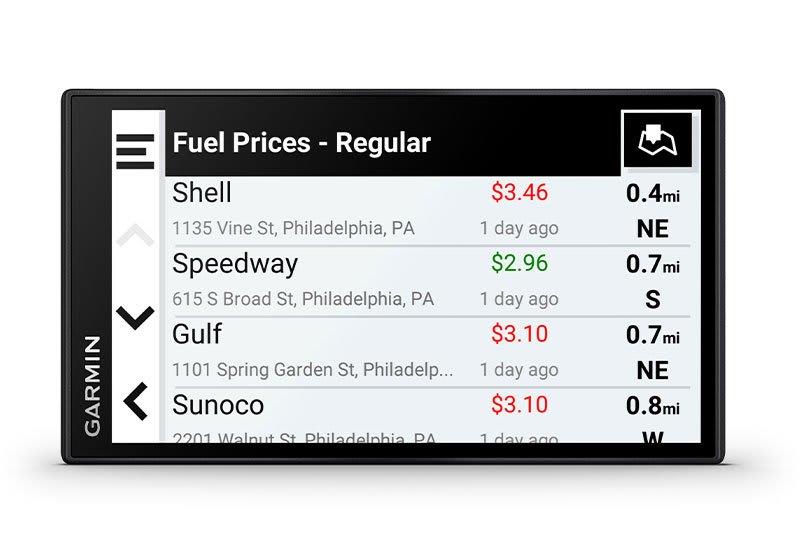 Connect with the Garmin Drive™ app to get updates of real-time fuel prices along your route.