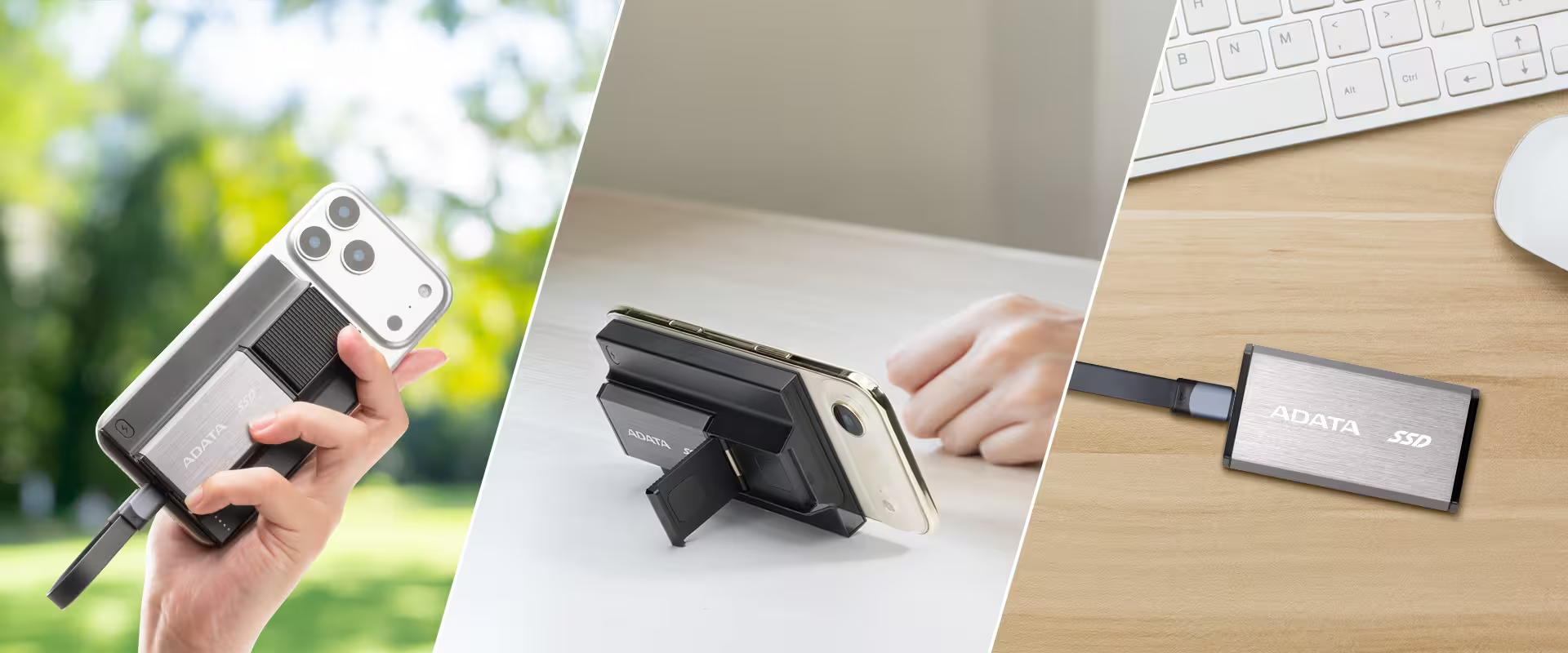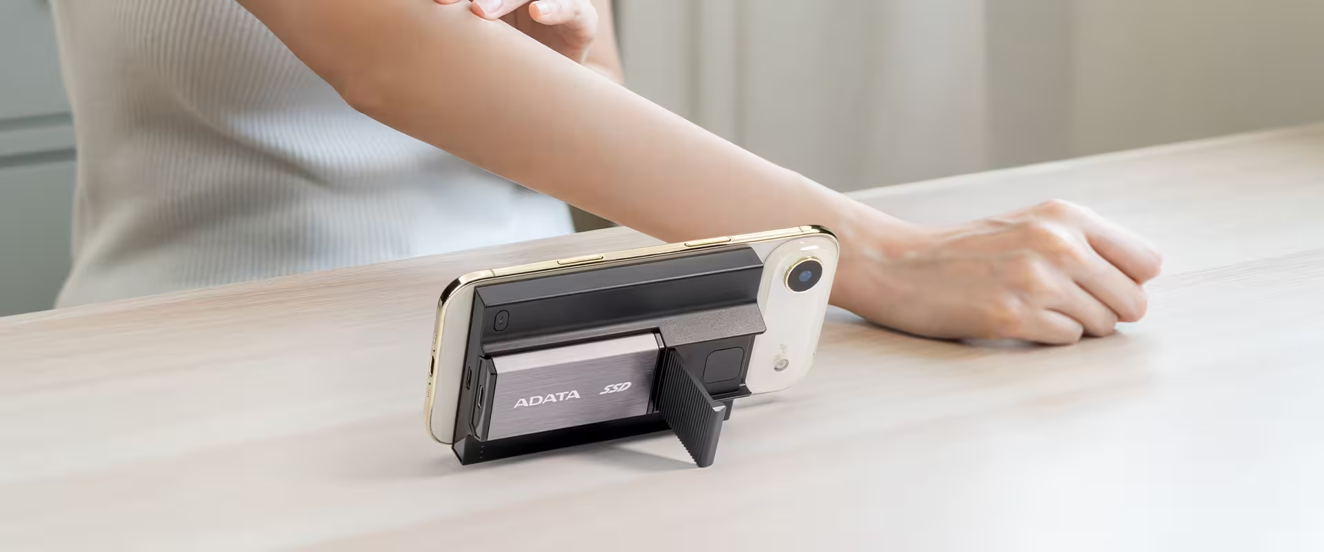 ADATA SR800MPB 1TB - 2-in-1 External SSD and Power Bank Module - 2000MBps Read/Write through USB-C - 5000mAh Power bank - 15W Wireless charging - Built-in Foldable Kick stand,