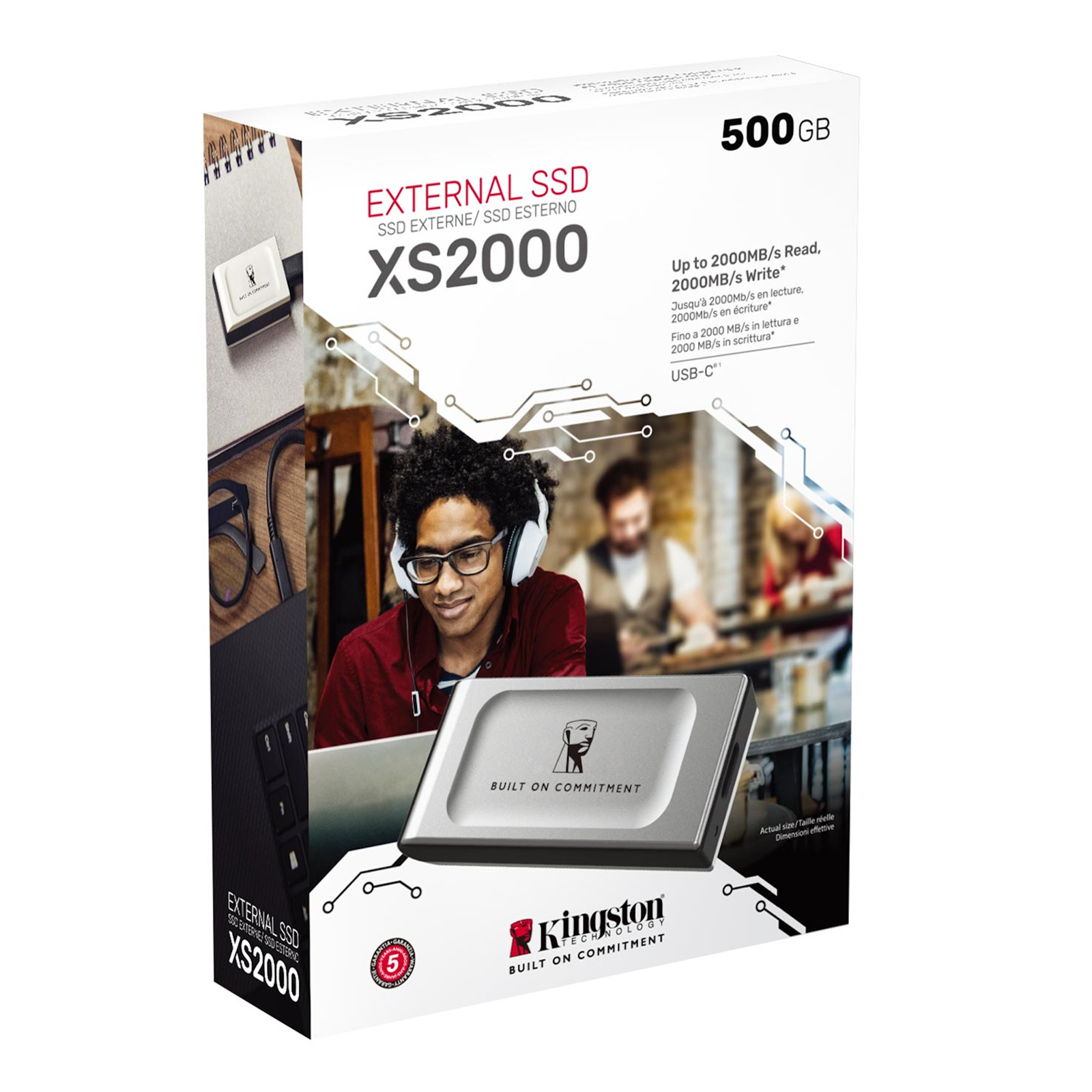 Kingston's XS2000 external SSD delivers high-speed storage in a portable, pocket-sized design. With USB 3.2 Gen 2x2 technology, it offers lightning-fast transfer speeds of up to 2,000MB/s and capacities of up to 4TB to store high-res images, 8K video and more. XS2000 connects with USB Type-C® and is water resistant and durable with a removable rubber sleeve, allowing on-the-go professionals and content creators to access their data anywhere.