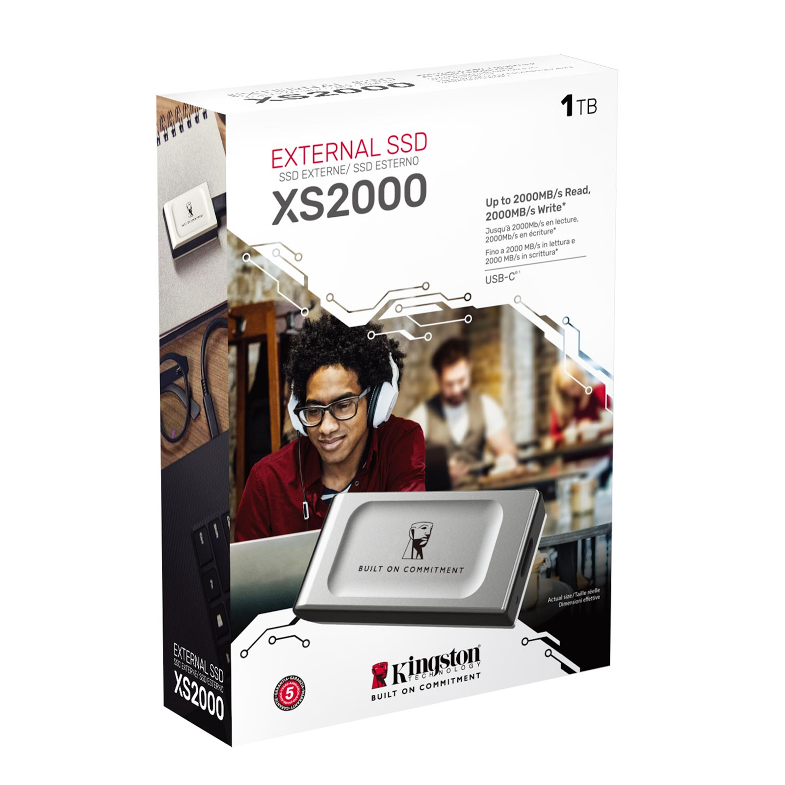 Kingston's XS2000 external SSD delivers high-speed storage in a portable, pocket-sized design. With USB 3.2 Gen 2x2 technology, it offers lightning-fast transfer speeds of up to 2,000MB/s and capacities of up to 4TB to store high-res images, 8K video and more. XS2000 connects with USB Type-C® and is water resistant and durable with a removable rubber sleeve, allowing on-the-go professionals and content creators to access their data anywhere.
