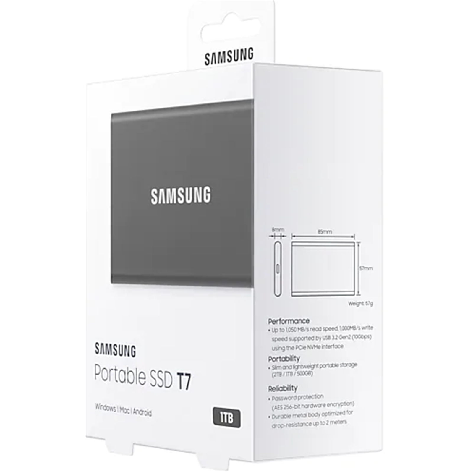Samsung T7 1TB Portable External SSD - Titan Grey - USB 3.2 Gen2 (10Gbps) - Read up to 1050MB/s - Password Protection